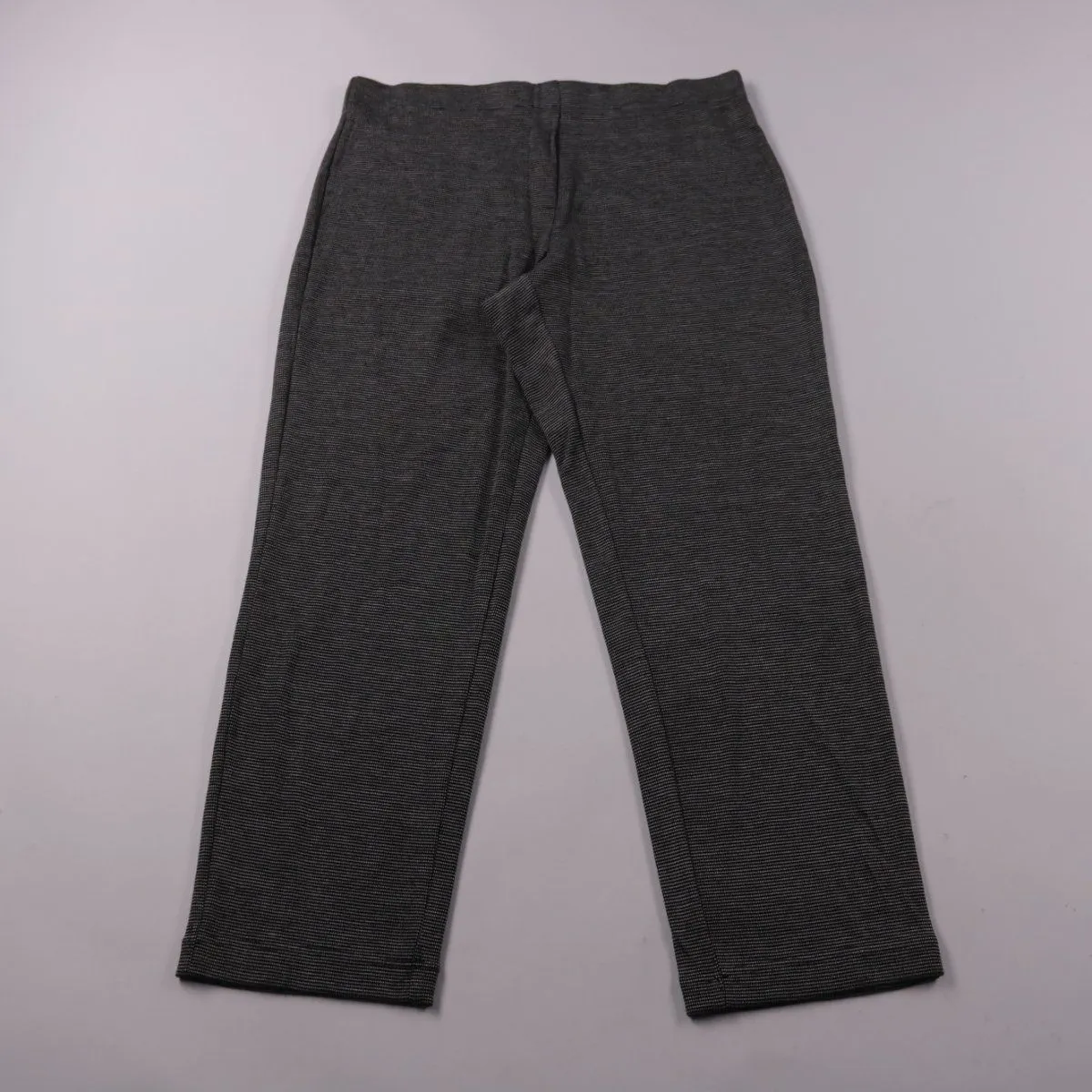 Женские брюки M&S в тёмно-сером цвете с мелким узором и прямым кроем, длина Short. Подойдут для офиса и повседневных образов с рубашками и жакетами. Ткань с добавлением эластана немного тянется и комфортна в носке.