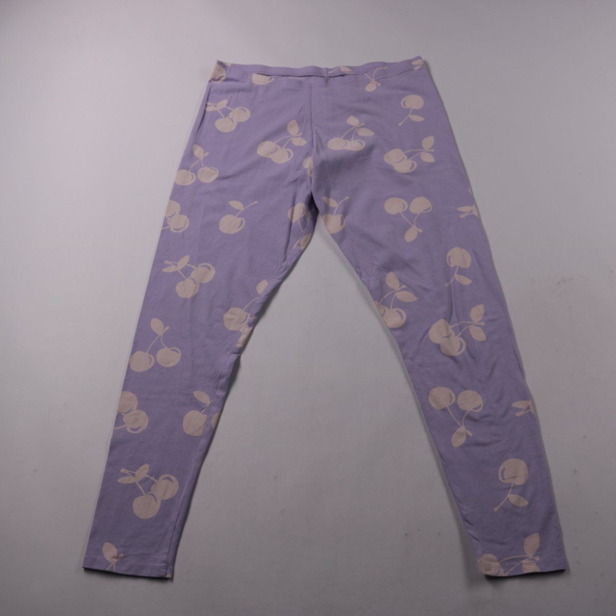 Женские легинсы F&F фиолетового цвета с бежевым принтом вишни. Подойдут для дома и сна, также можно носить как базовый нижний слой в прохладную погоду. Тянущийся материал комфортно садится по фигуре и не стесняет движений.