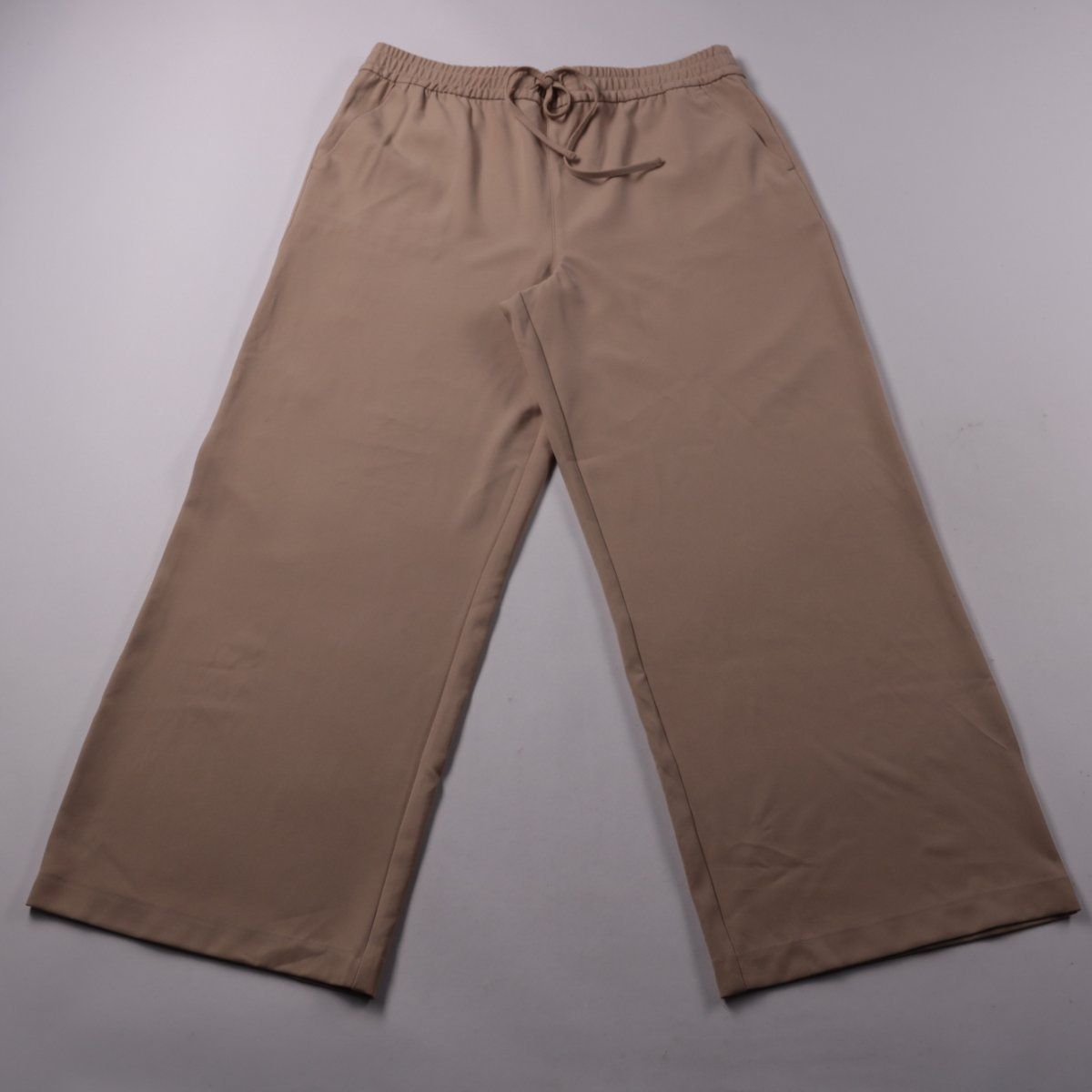 Женские брюки F&F бежевого цвета, прямого кроя, с эластичным поясом и шнурком. Подойдут для повседневной носки и спокойных образов на работу или прогулку. Пояс на резинке удобно регулируется по талии.