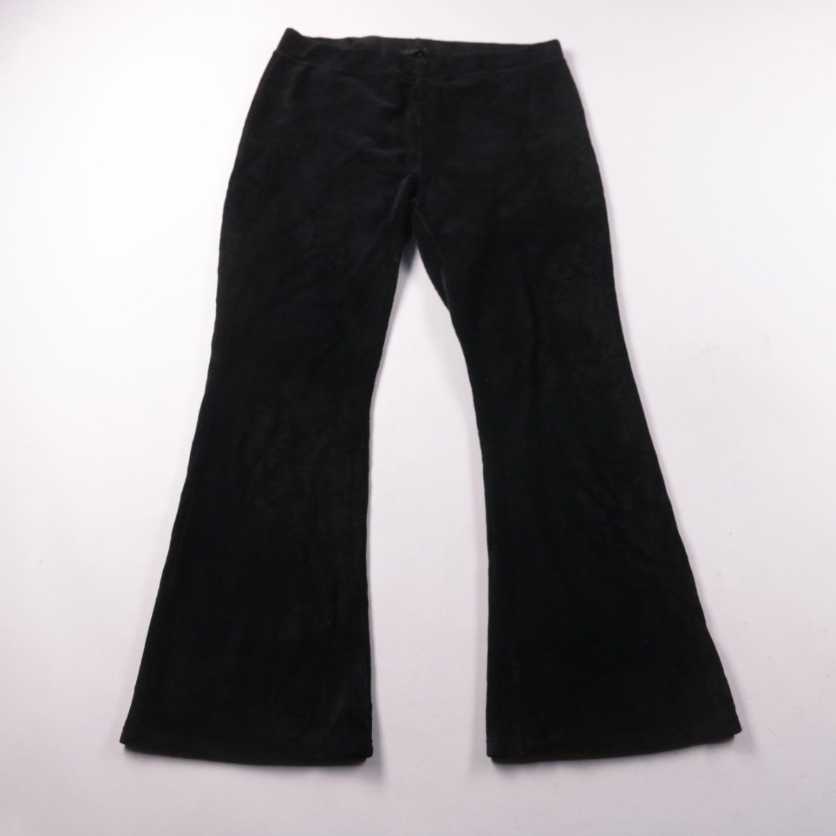 Чёрные женские брюки клёш из смесовой ткани с добавлением эластана. Подойдут для повседневных образов и более строгого стиля. Практичны тем, что материал слегка тянется и комфортно садится по фигуре.