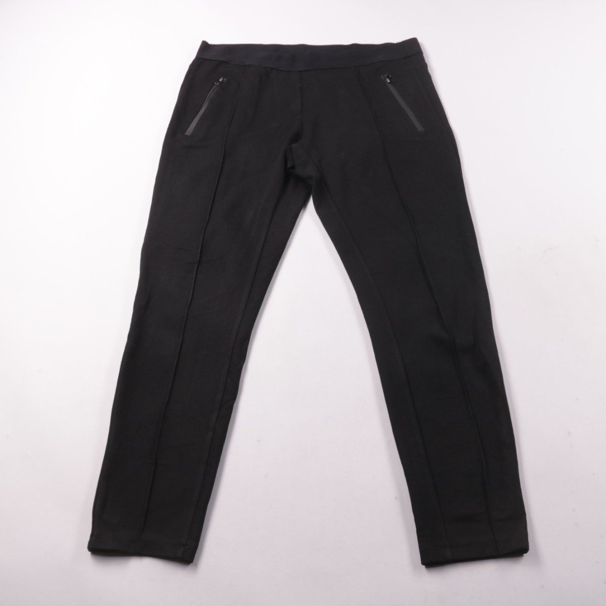 Женские чёрные брюки Norah с зауженным кроем и карманами на молнии. Подойдут для повседневных и офисных образов, хорошо сочетаются с кедами и туфлями. Ткань с эластаном даёт комфортную посадку и немного тянется.