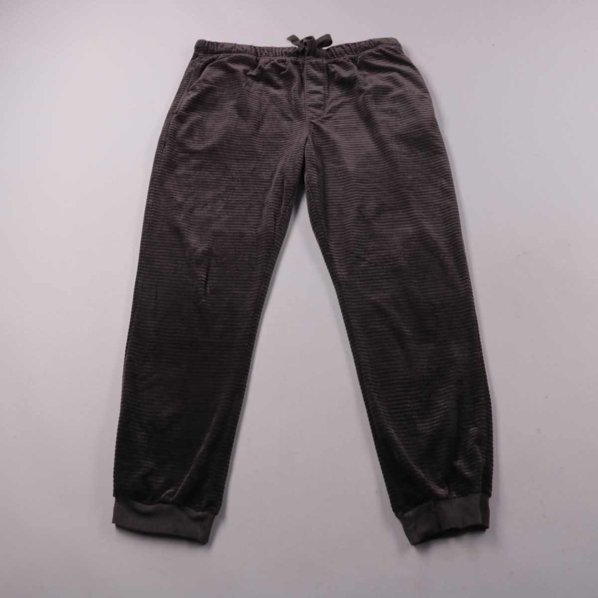 Брюки ASOS DESIGN из мягкого велюра в тёмно-сером цвете, с эластичным поясом и шнурком. Подойдут для дома и повседневных образов, низ на манжетах. Пояс регулируется, поэтому удобно посадить по талии.