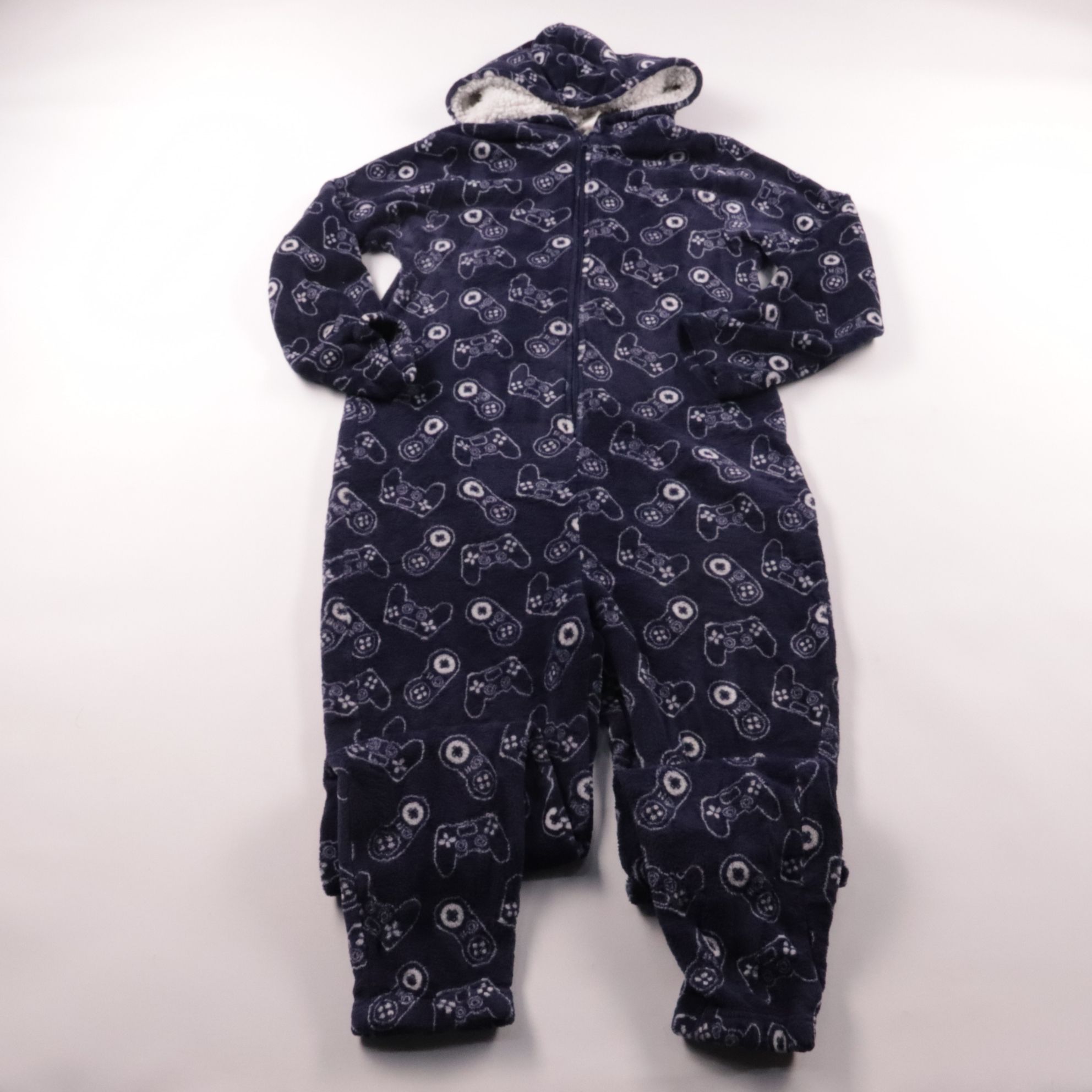 Тёплый комбинезон Peacocks тёмно-синего цвета с принтом в виде джойстиков и капюшоном на молнии. Подойдёт для прогулок и поездок в холодное время года, мягкая подкладка помогает сохранять тепло. Удобно быстро надевать и снимать благодаря застёжке-молни...