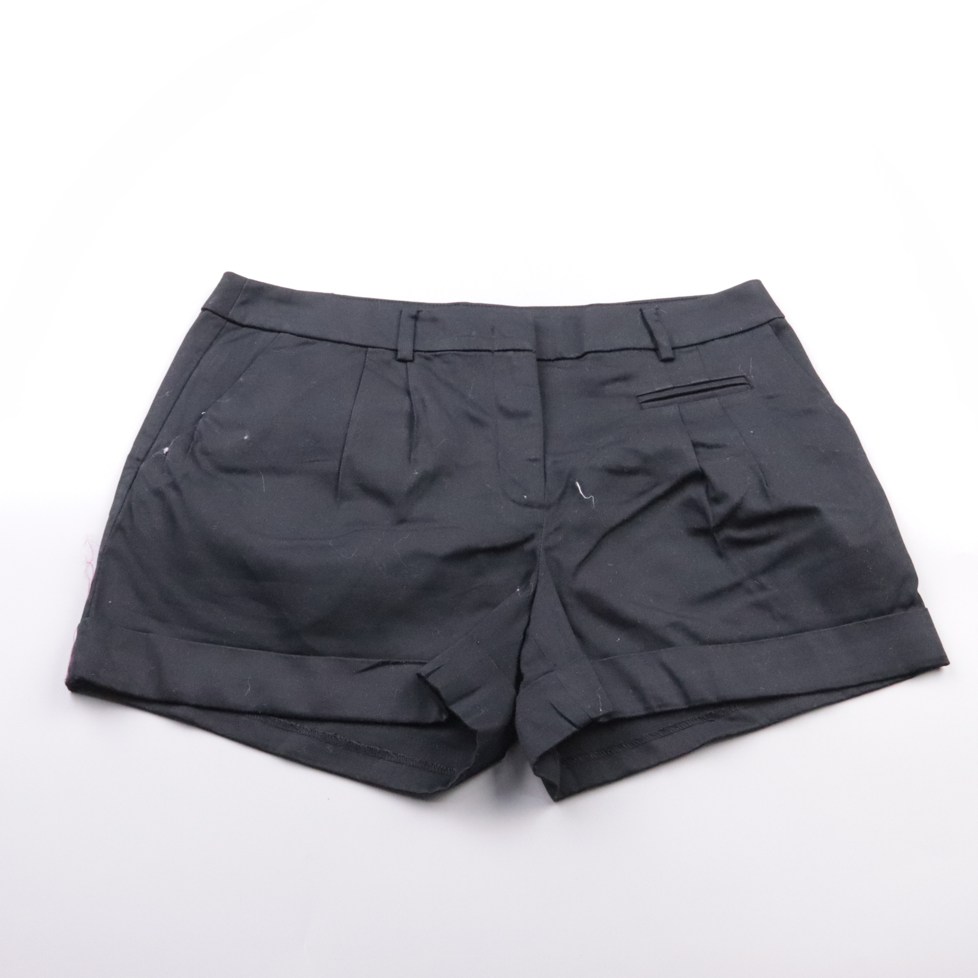 Черные шорты H&M с отворотами и шлевками под ремень, удобная посадка на талии. Подойдут для летних прогулок и повседневных образов с футболками и рубашками. Хлопковая ткань с добавлением эластана дает комфорт и немного тянется.