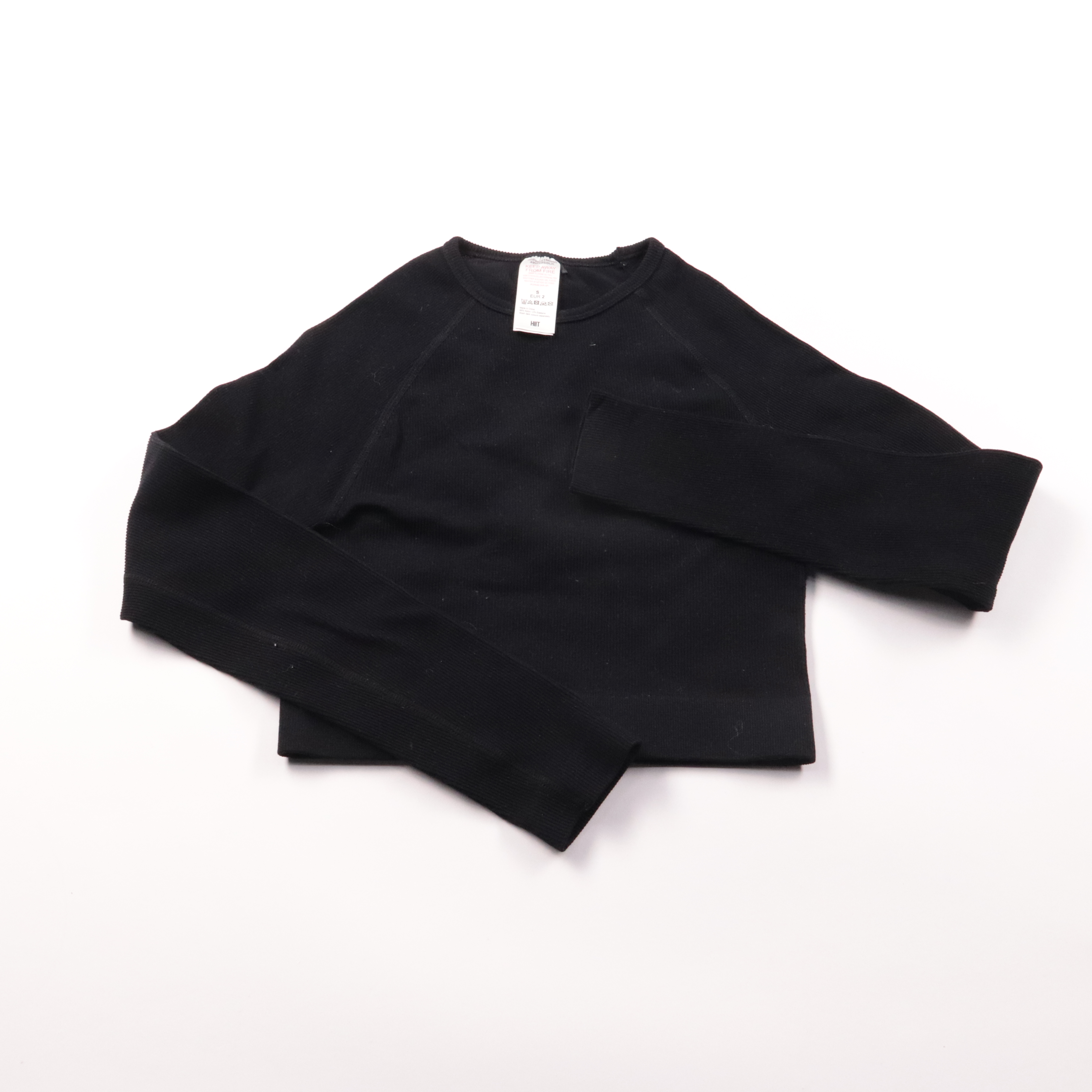 Чёрная укороченная кофта HIIT с круглым вырезом и рукавом реглан. Подойдёт для тренировок и повседневных образов, хорошо сочетается с леггинсами или джоггерами. Эластичная ткань тянется и плотно садится по фигуре, не сковывая движения.
