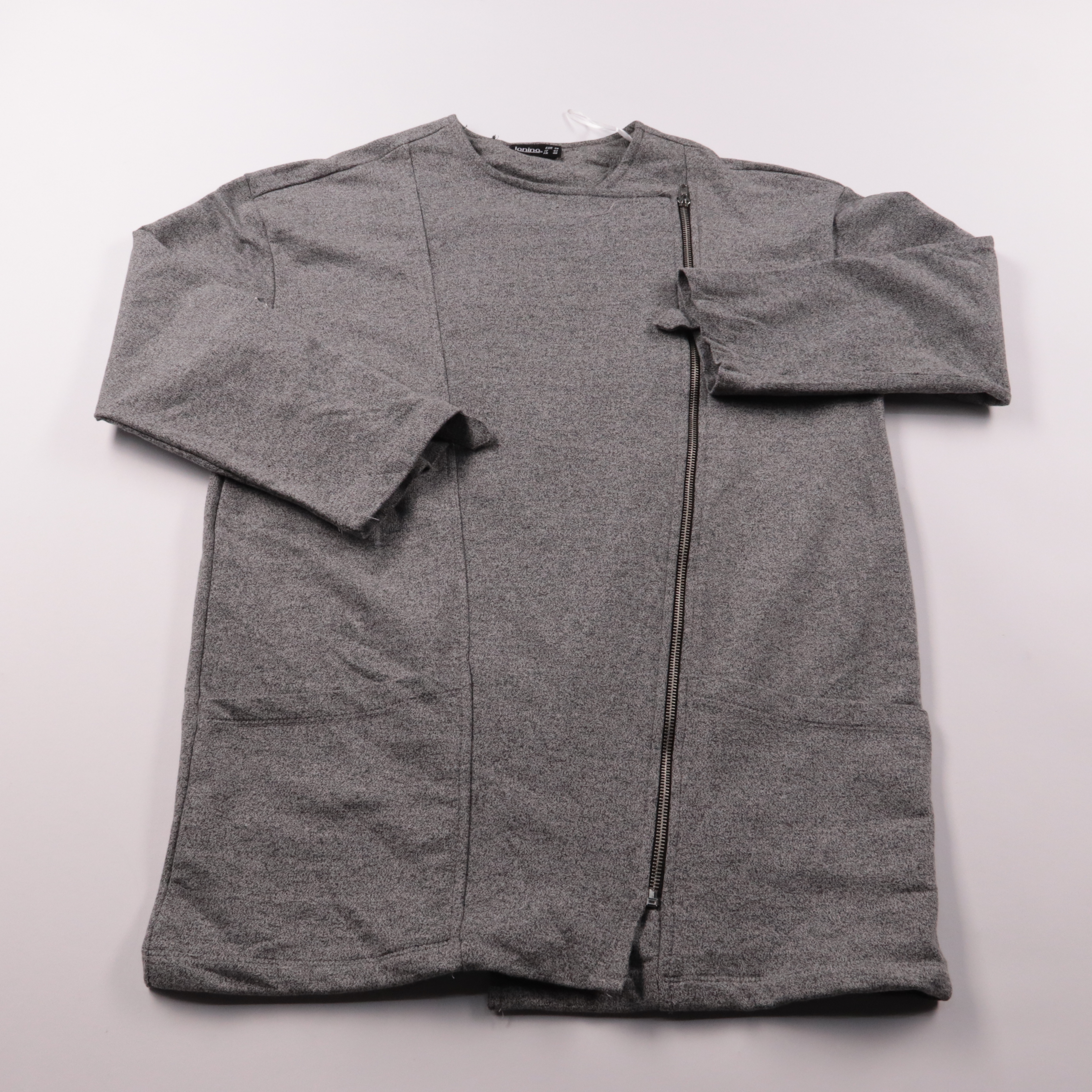 Кардиган Janina серого меланжевого цвета с асимметричной застёжкой на молнию. Подойдёт для повседневных образов в демисезон, удобно носить как второй слой с футболкой или водолазкой. Смесовая ткань (хлопок с полиэстером) практична в уходе и меньше мнётся.