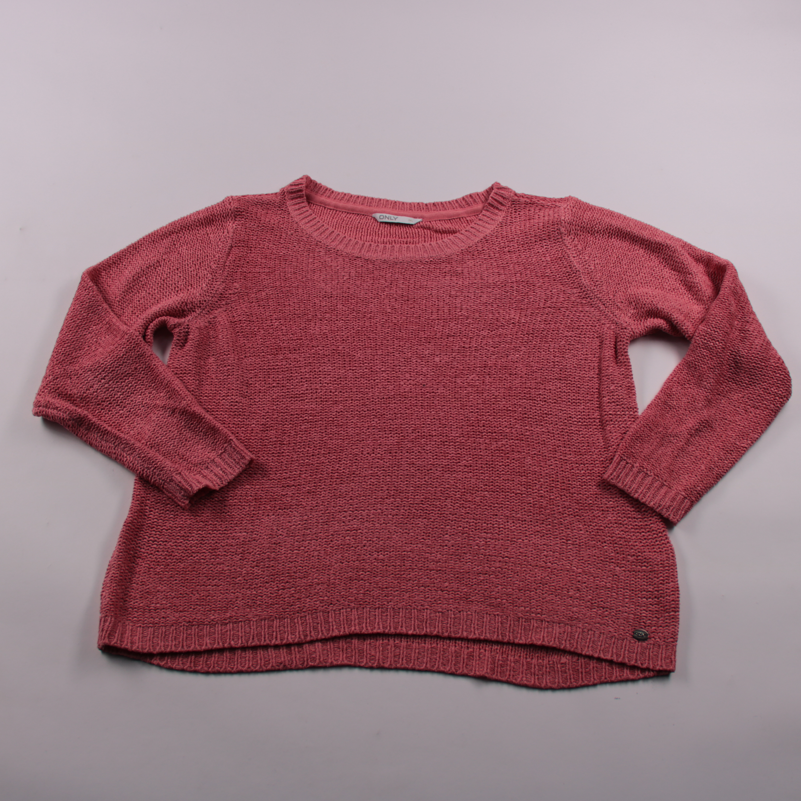 Вязаный свитер Only в розовом оттенке, свободный крой с круглым вырезом и резинкой по горловине, манжетам и низу. Подойдёт для повседневных образов в прохладную погоду, хорошо сочетается с джинсами и юбками. Практичен тем, что легко наслаивается на фут...