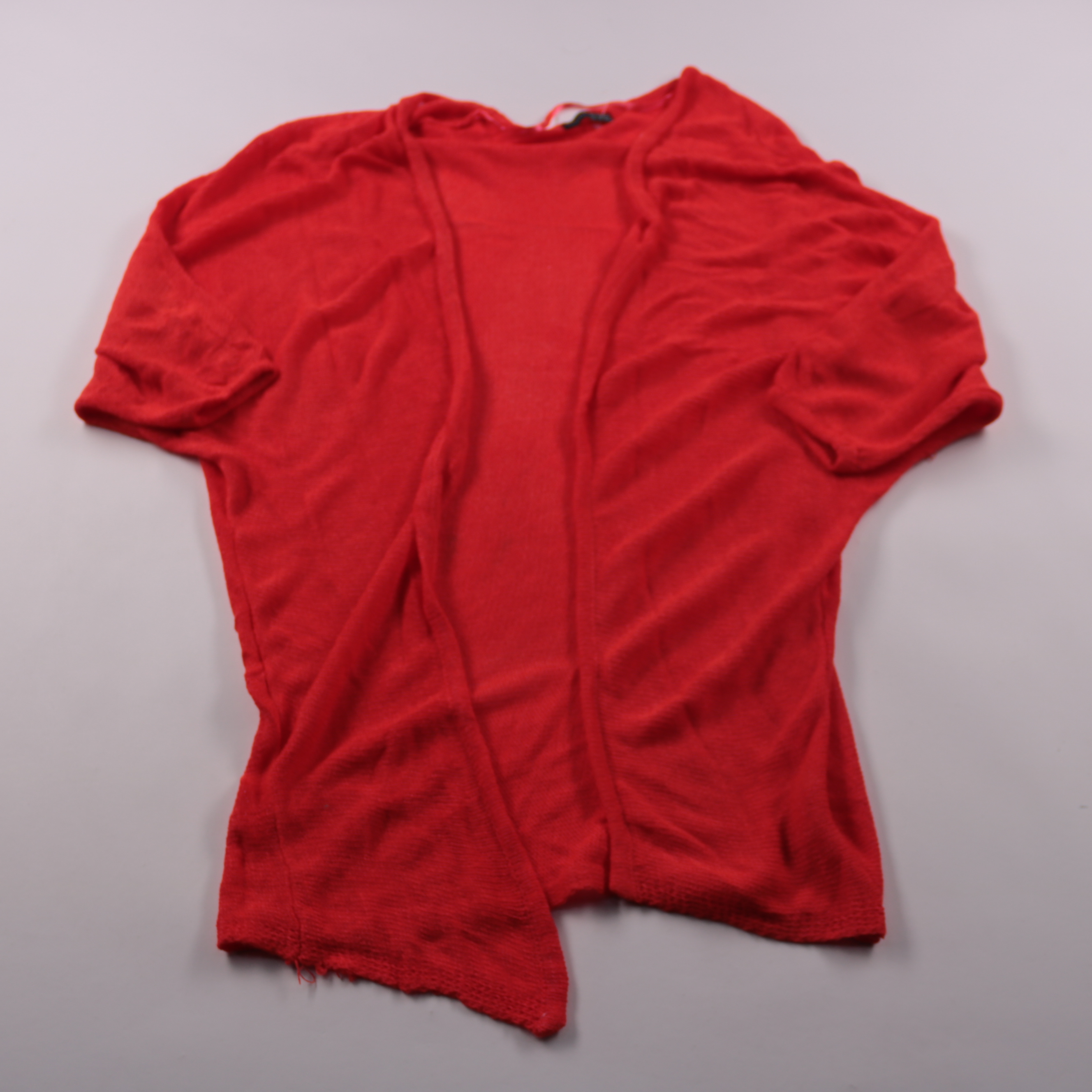 Лёгкий красный кардиган Atmosphere с коротким рукавом и открытым передом. Подойдёт для офиса и повседневных образов поверх топа или платья в прохладные дни. Мягкий трикотаж почти не мнётся и быстро сохнет.