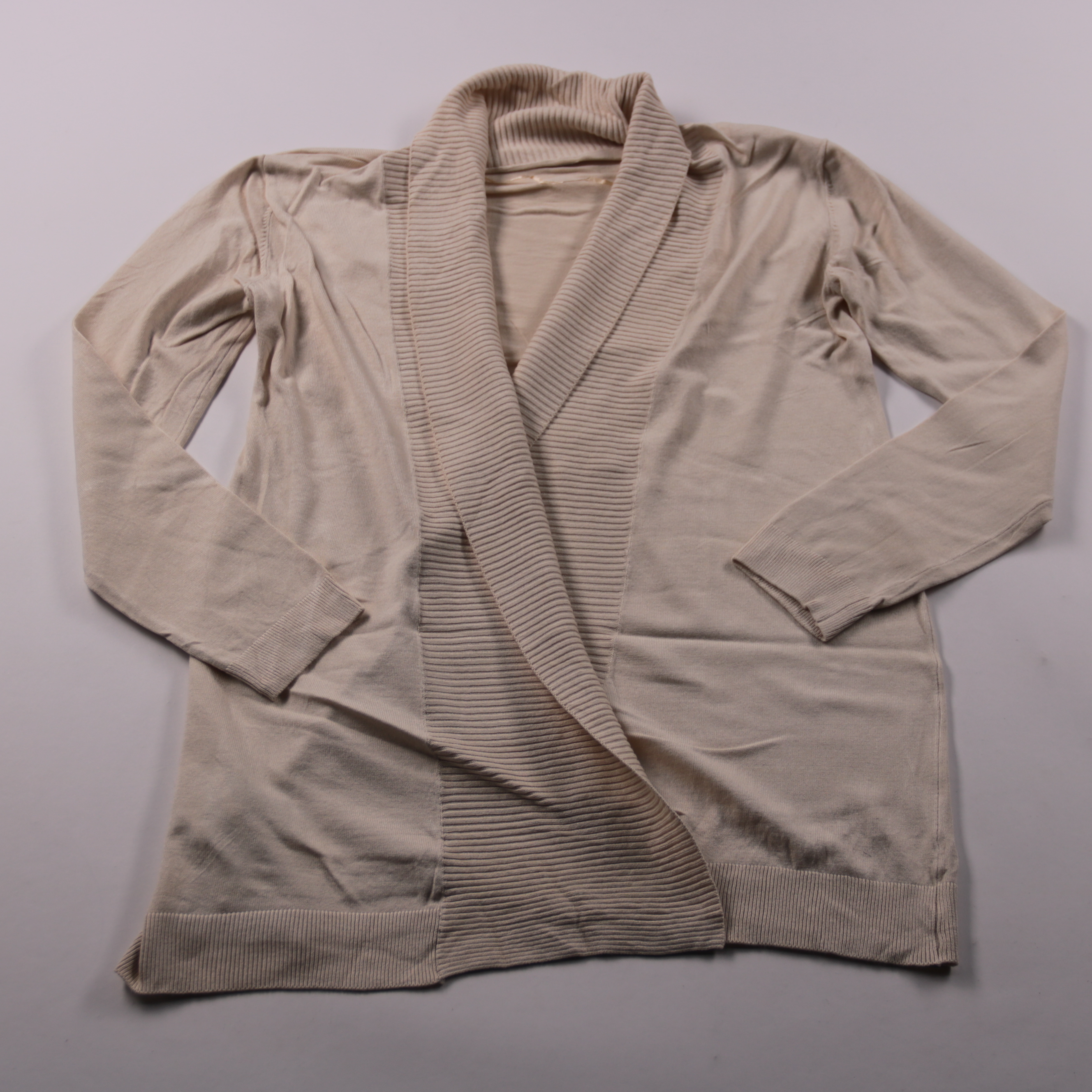 Кардиган Mango бежевого цвета с шалевым ребристым воротником и карманами. Подойдёт для офиса и повседневных образов в прохладную погоду, легко сочетается с базовыми вещами. Мягкая вискозная ткань комфортна в носке и приятна к телу.