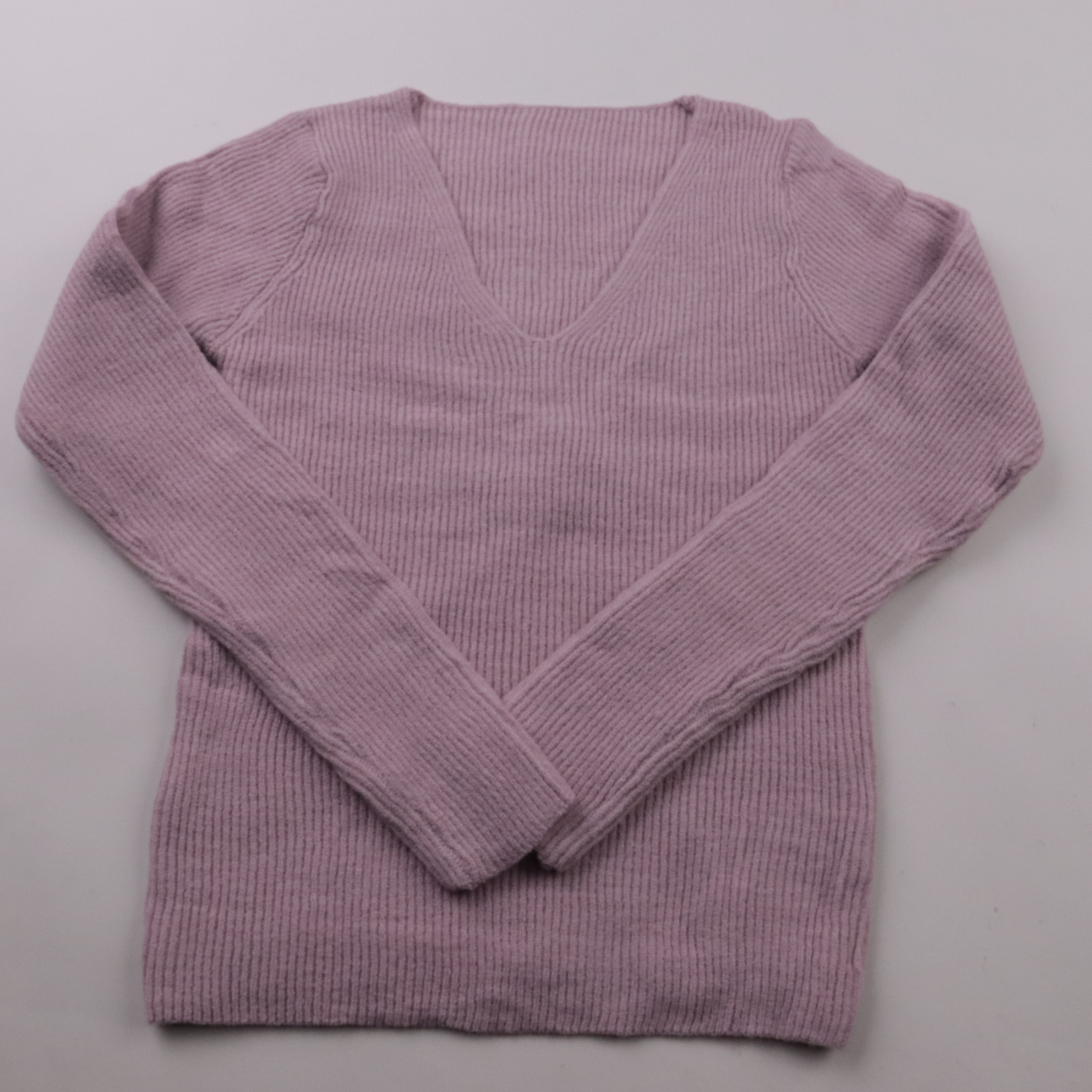 Женский трикотажный джемпер Shein в рубчик с V-образным вырезом, мягкий лилово-розовый оттенок. Подойдёт для повседневных образов в демисезон и прохладные летние вечера, хорошо смотрится с джинсами и юбками. Акриловый материал лёгкий в уходе и быстро с...