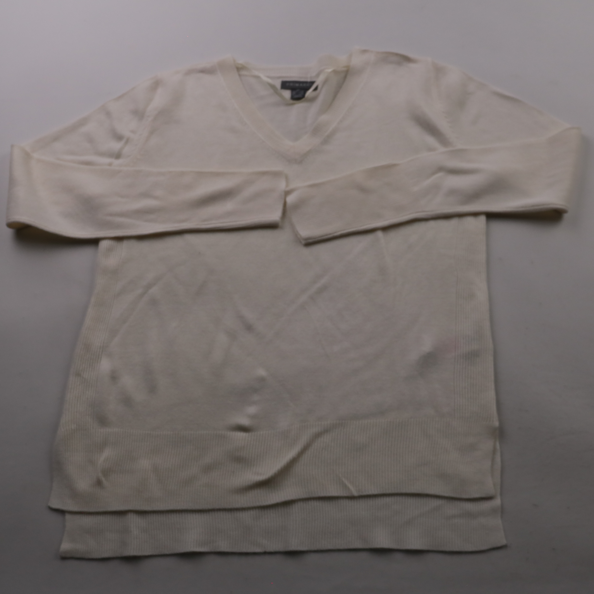 Джемпер Primark молочного цвета с V‑образным вырезом и длинным рукавом. Подойдёт для повседневных образов в демисезон и зимой как базовый слой под жакет или пальто. Акриловый трикотаж лёгкий в уходе и быстро сохнет.