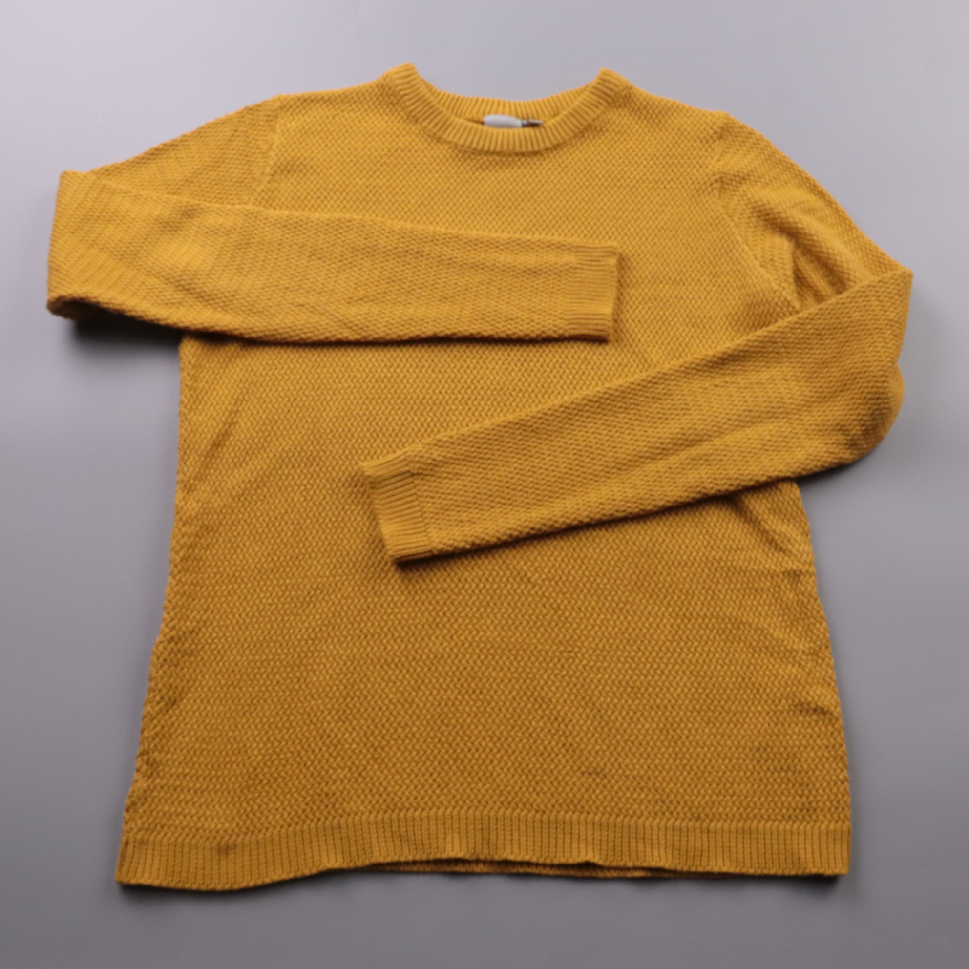 Вязаный джемпер ICHI горчичного цвета с круглым вырезом и фактурной вязкой. Подойдёт для повседневных образов в прохладную погоду, хорошо сочетается с джинсами и юбками. Смесь хлопка и акрила делает его мягким и более простым в уходе.