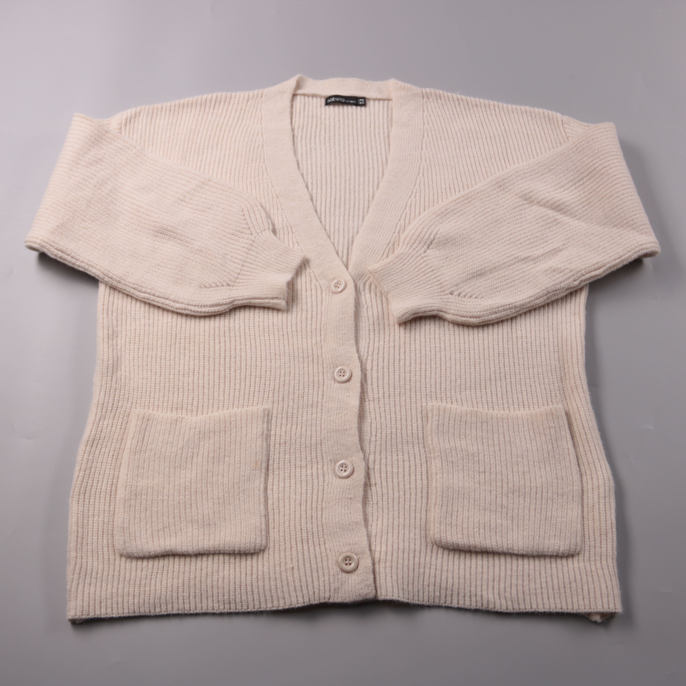 Вязаный кардиган Sabelia the label в бежевом цвете, на пуговицах, с V-образным вырезом и накладными карманами. Подойдёт для повседневных образов и офиса в прохладную погоду, удобно носить поверх топа или рубашки. Практичный акриловый трикотаж хорошо де...