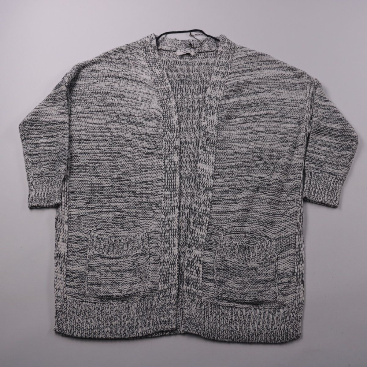 Вязаный кардиган Sublevel серого меланжевого цвета, свободный крой с открытым передом и двумя накладными карманами. Подойдёт для повседневных образов в прохладную погоду и удобно сочетается с джинсами и платьями. Практичный вариант для многослойности: легко накинуть поверх футболки или водолазки.