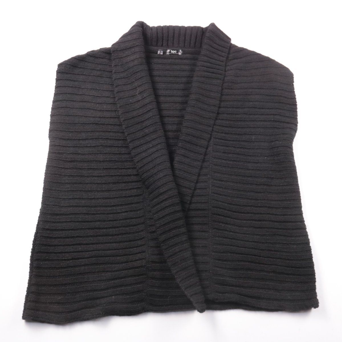 Вязаный кардиган BPC чёрного цвета с фактурной резинкой и мягким воротником-стойкой без застёжки. Подойдёт для повседневных образов и офиса в прохладную погоду, удобно носить слоями. Акриловый материал прост в уходе и быстро сохнет.