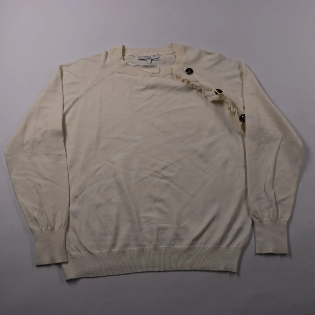 Джемпер Next молочного цвета с декоративной планкой на пуговицах у плеча. Подойдёт для повседневных образов и офиса, хорошо сочетается с джинсами и юбками. Мягкий трикотаж и манжеты/низ в рубчик помогают держать форму и комфортно сидеть.