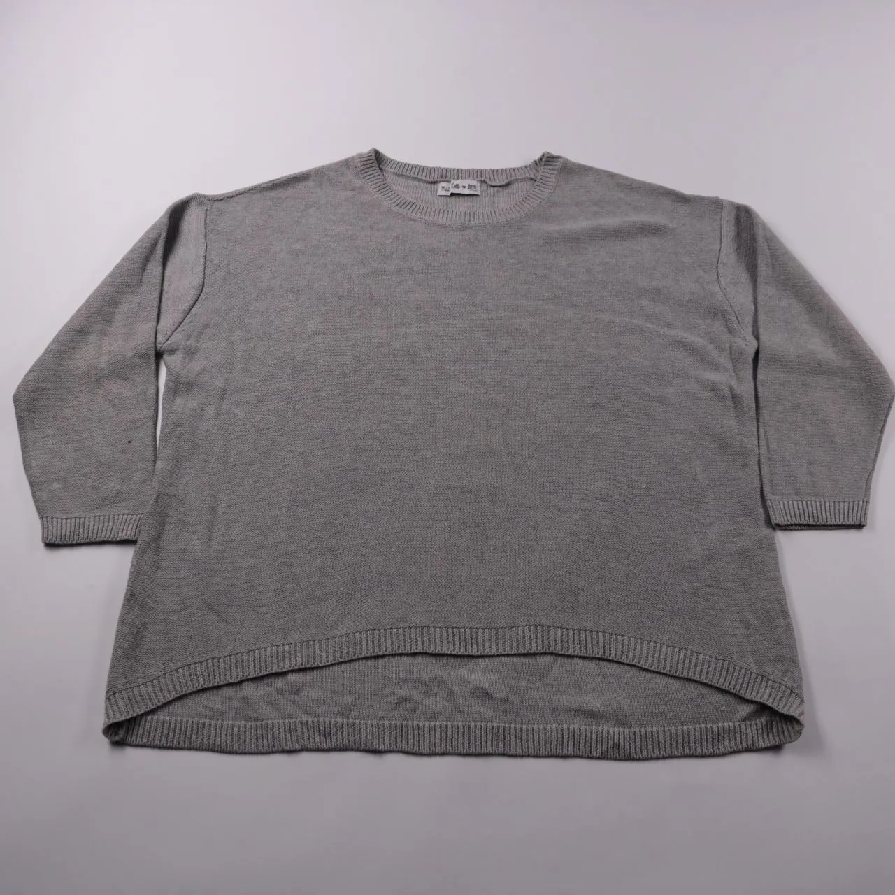 Серый вязаный джемпер Bonprix (линейка Marie Keng) с круглым вырезом и удлинённой спинкой. Подойдёт для повседневных образов в прохладную погоду и в офис с базовыми брюками или джинсами. Практичный плюс — спокойный цвет и свободная посадка, удобно соче...
