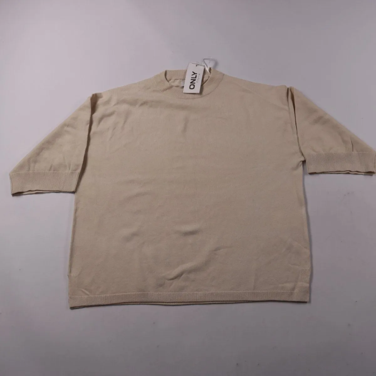 Трикотажный джемпер ONLY в оттенке birch с круглым вырезом и коротким рукавом. Подойдёт для тёплой погоды и многослойных образов в офис или на каждый день. Мягкая вискоза в составе приятно ощущается на коже.