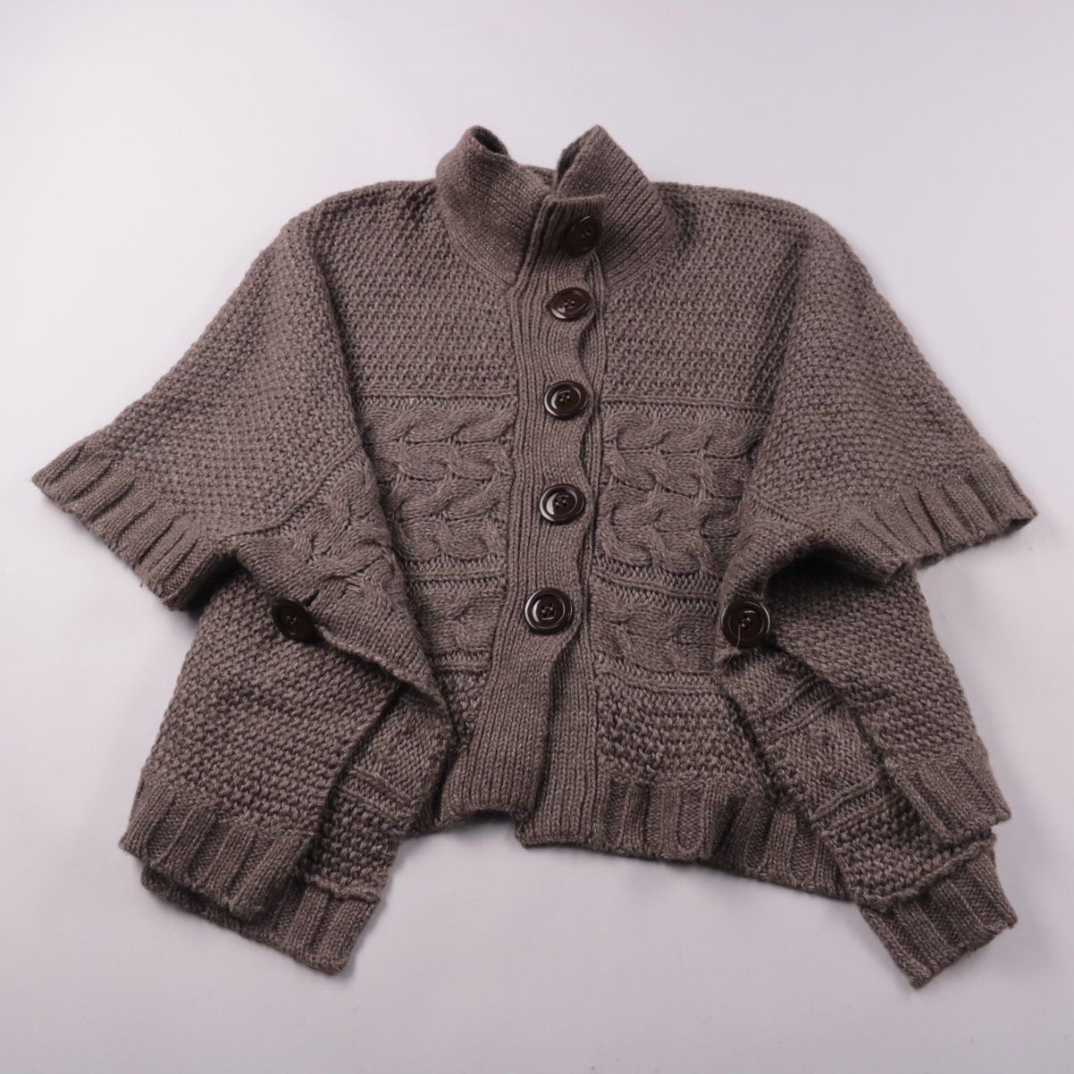 Вязаный кардиган Next с высоким воротником-стойкой и застёжкой на крупные пуговицы, выполнен фактурной вязкой с косами. Подойдёт для повседневных образов в прохладную погоду и для многослойных комплектов. Смесь шерсти и альпаки делает вещь тёплой и приятной на ощупь.