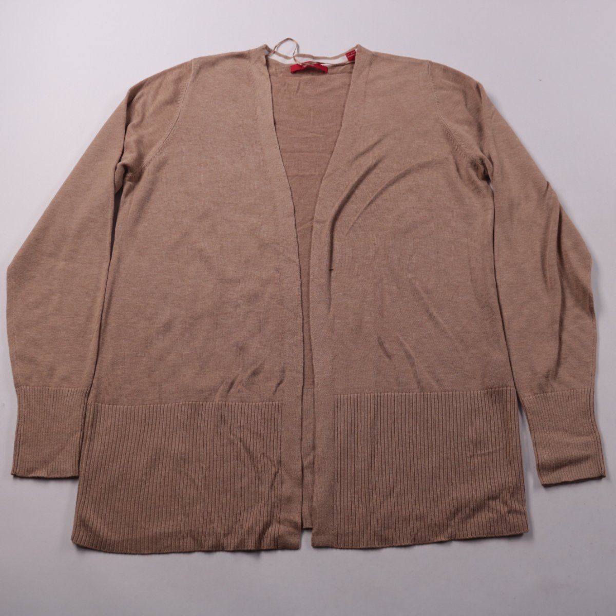 Женский кардиган s.Oliver бежевого цвета, тонкий трикотаж с V-образным вырезом и без застёжки. Подойдёт для офиса и повседневных образов в прохладную погоду, удобно носить вторым слоем. Длинные рукава и удлинённый крой хорошо комбинируются с платьями и брюками.
