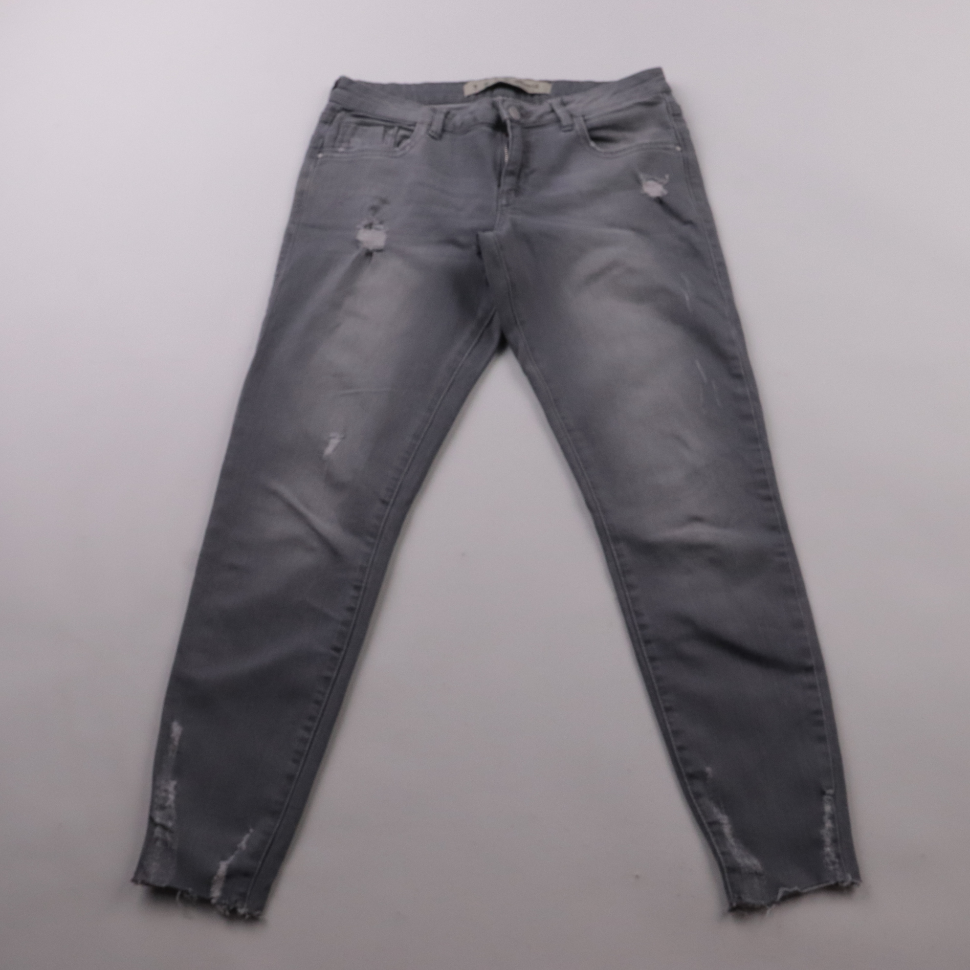 Женские джинсы Denim Co. серого цвета с эффектом потертостей и небольшими декоративными разрывами. Подойдут для повседневных образов в стиле casual — с кедами, ботинками или лоферами. Плотный деним с добавлением эластана чуть тянется и комфортно сидит.