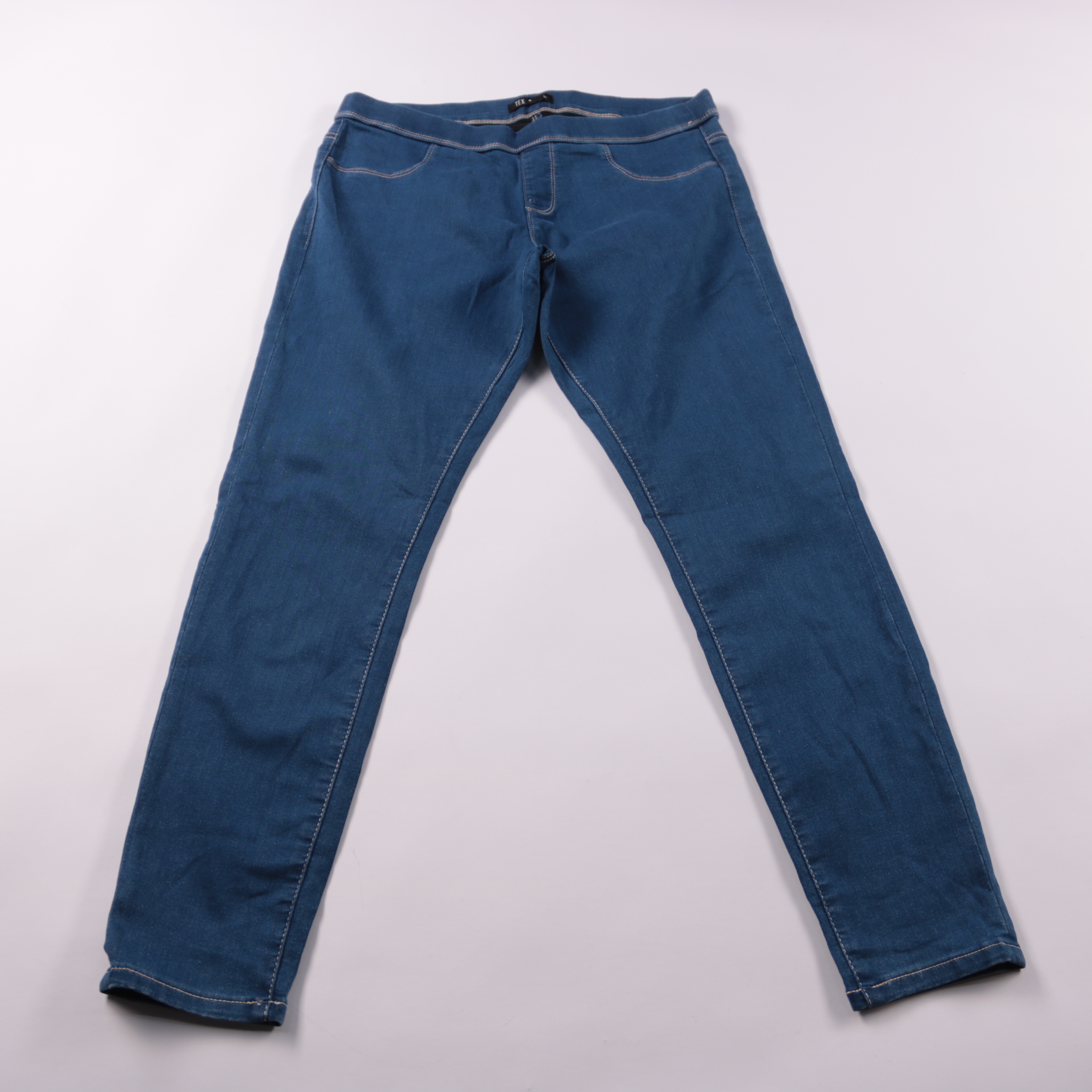 Женские джинсы TEX синего цвета, размер L, с лаконичным кроем и аккуратной строчкой. Подойдут для повседневных образов и прогулок, легко сочетаются с футболками и свитерами. В составе есть эластан, поэтому ткань тянется и комфортно садится по фигуре.