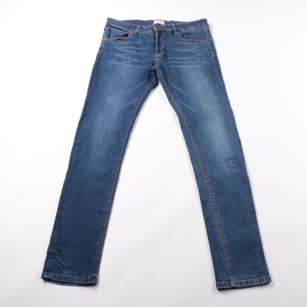 Мужские джинсы Shine Original из денима синего цвета с лёгким эффектом потертостей. Подойдут для повседневной носки и городских образов в любой сезон. За счёт эластана ткань чуть тянется и комфортнее сидит в движении.