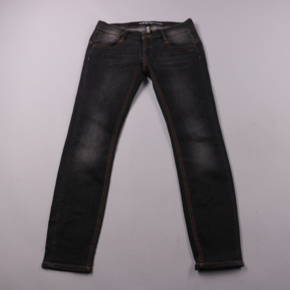 Женские джинсы GANG из тёмного денима с лёгким эффектом потёртости. Подойдут для повседневных образов в любое время года, хорошо сочетаются с кедами и ботинками. Материал с добавлением эластана даёт комфортную посадку и небольшую эластичность.