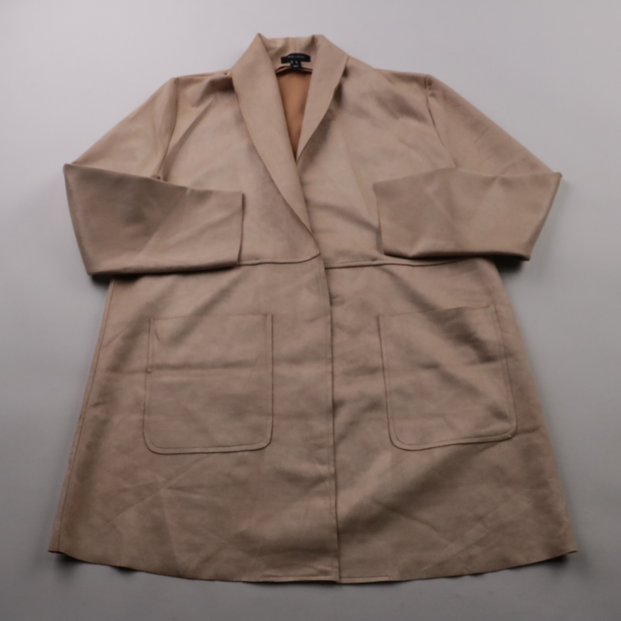 Пиджак New Look в бежевом цвете, прямого удлинённого кроя с накладными карманами. Подойдёт для офиса и повседневных образов, хорошо сочетается с брюками, джинсами и платьями. Практичный материал почти не мнётся и комфортно тянется за счёт эластана.
