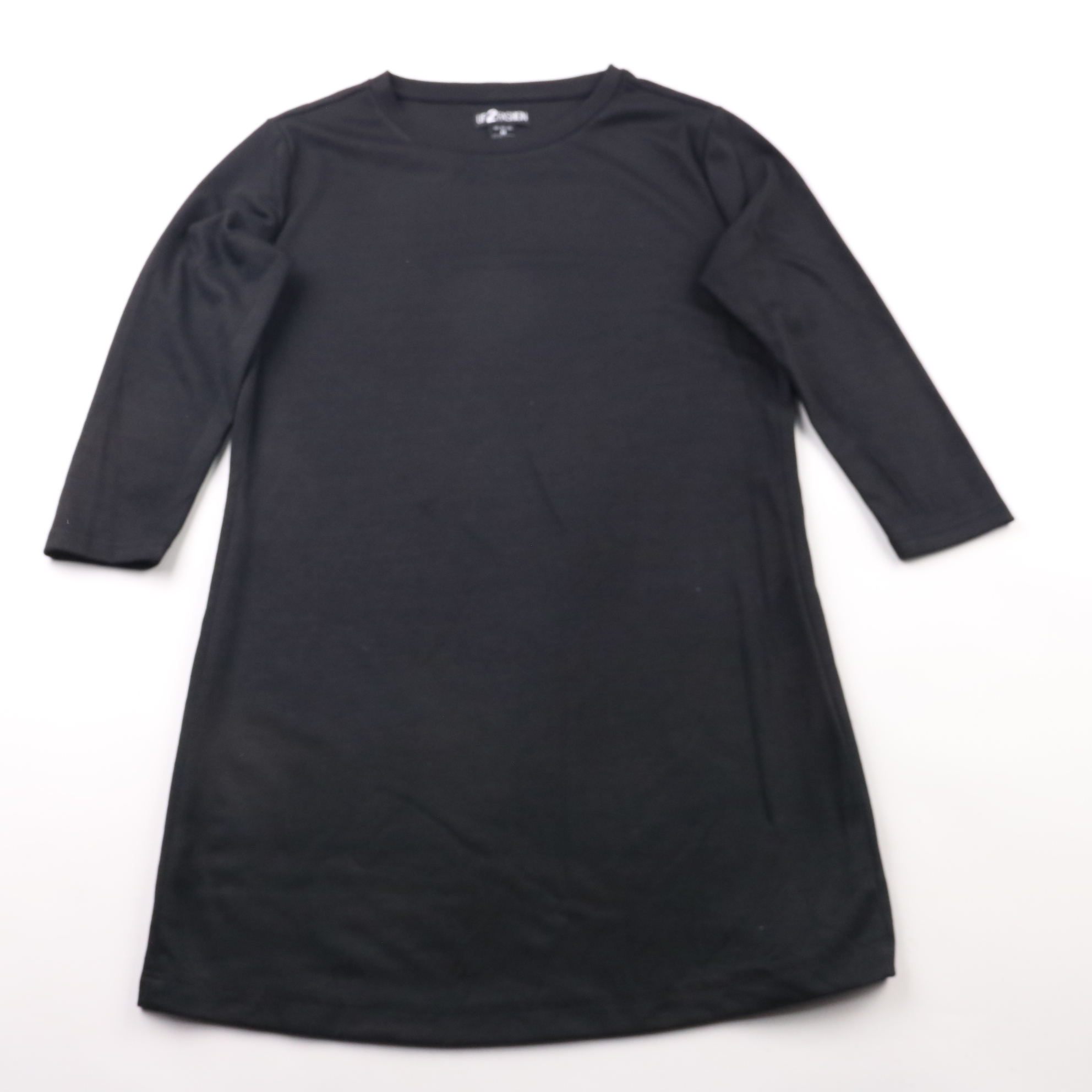 Повседневное платье Up 2 Fashion чёрного цвета, прямого свободного кроя с рукавом 3/4. Подойдёт для офиса и на каждый день, легко сочетать с кедами или ботильонами. Практичный плюс — универсальный цвет и комфортная посадка, не сковывает движения.