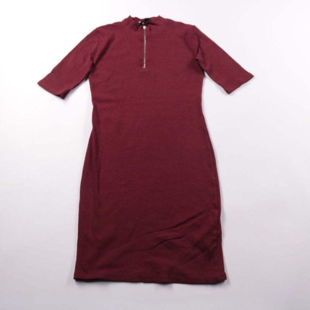 Повседневное платье Tally Weijl бордового цвета из трикотажа в рубчик, с коротким рукавом и молнией у горловины. Подойдёт для города и офиса в стиле casual, легко сочетается с кедами или ботильонами. Материал с эластаном хорошо тянется и комфортно сиди...
