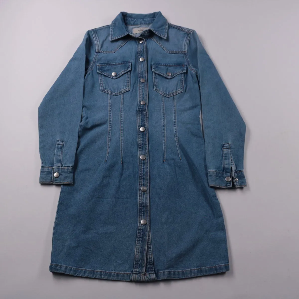 Джинсовое платье-рубашка New Look Denim из плотного хлопкового денима, застёгивается на кнопки и имеет нагрудные карманы с клапанами. Подойдёт для повседневных образов в городе, можно носить как самостоятельное платье или как лёгкий верхний слой с футболкой и кедами. Практичный материал и удобная застёжка делают его простым в уходе и комфортным на каждый день.
