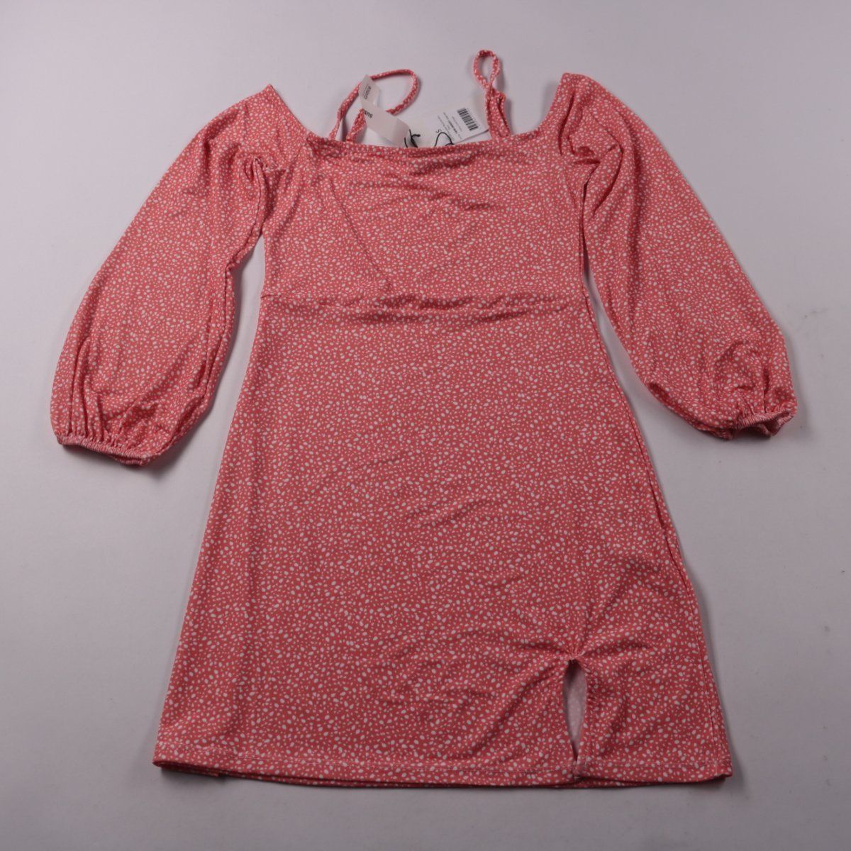 Повседневное платье NA-KD с квадратным вырезом и объёмными рукавами на резинке, розового цвета с мелким белым принтом. Подойдёт для прогулок и встреч в городе, хорошо смотрится с кедами или босоножками. Эластичная ткань комфортно садится по фигуре и проста в уходе.