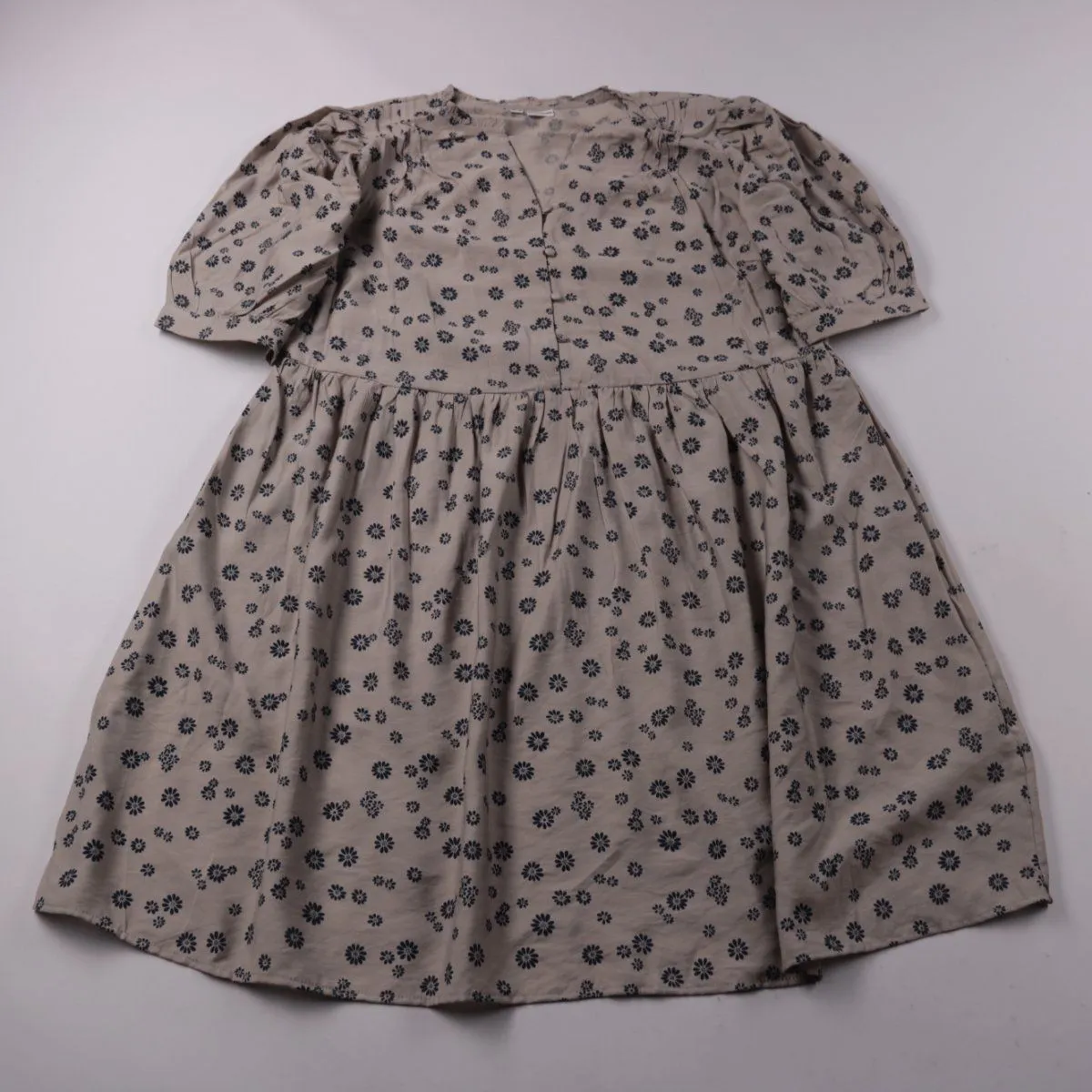 Повседневное платье Bodyflirt бежевого цвета с мелким цветочным принтом и рукавами 3/4. Подойдёт для прогулок и на каждый день в тёплую погоду. Лёгкая ткань на основе вискозы комфортна в носке и хорошо драпируется.