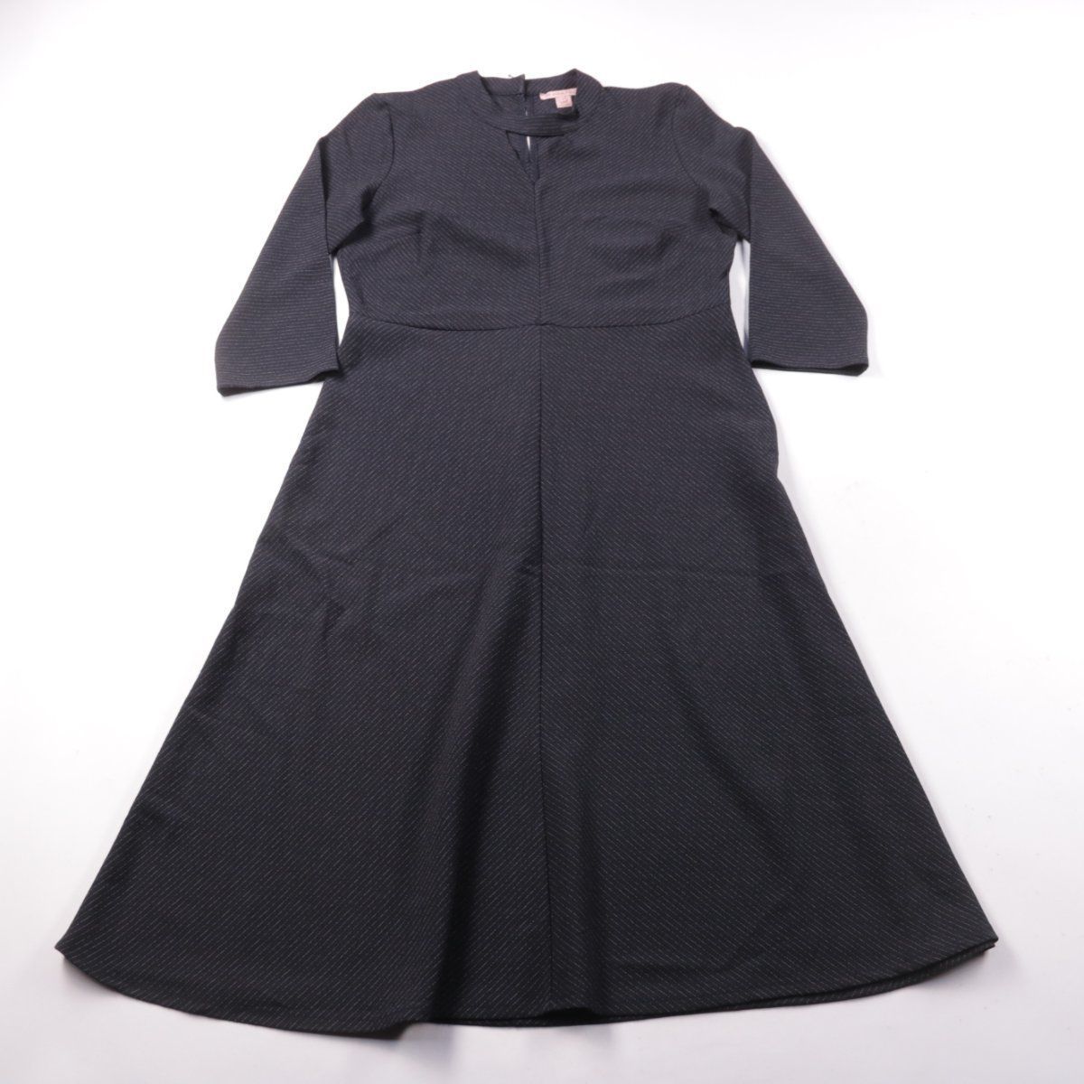 Повседневное платье Anna Field тёмного цвета с рукавами 3/4 и слегка расклешённой юбкой. Подойдёт для офиса и повседневных выходов, смотрится аккуратно за счёт лаконичного кроя. Ткань со стрейчем лучше садится по фигуре и меньше мнётся.