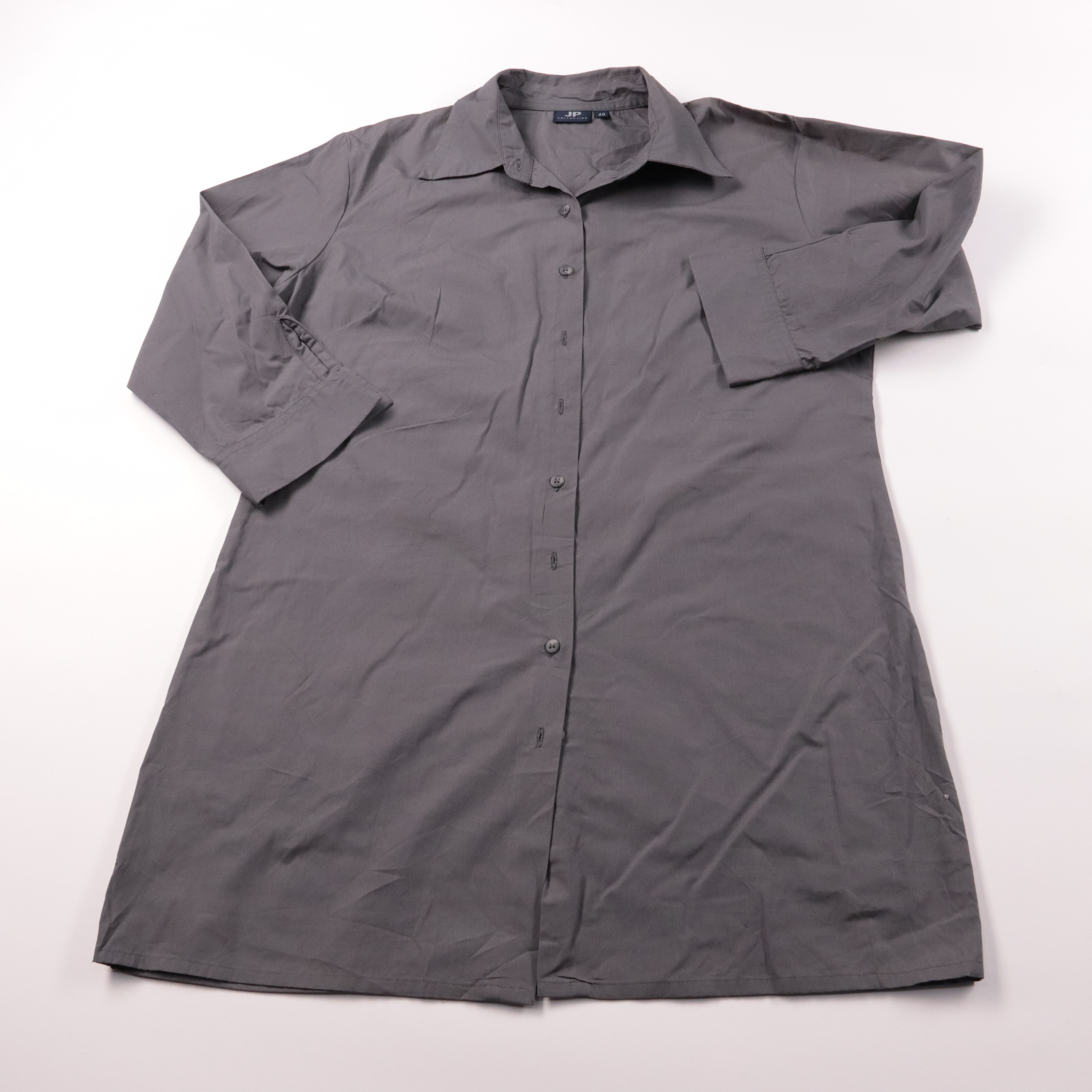 Женская рубашка JP Collection серого цвета с длинным рукавом и классическим воротником на пуговицах. Подойдёт для офиса и повседневных образов, хорошо сочетается с брюками и джинсами. Практичный вариант: спокойный цвет и плотная ткань меньше марки и ле...