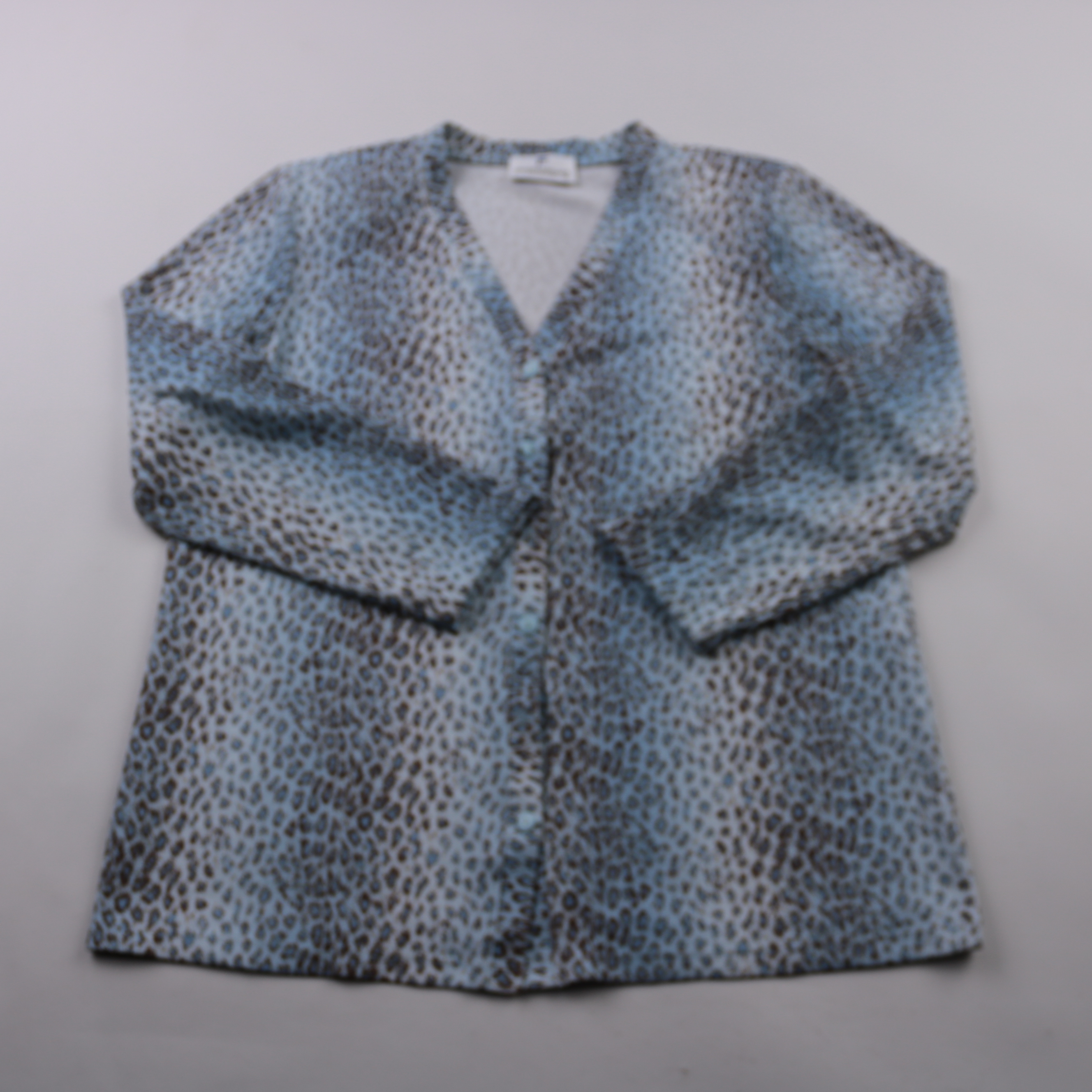 Блузка Frankenhwalder с длинным рукавом и V-образным вырезом, выполнена из полиэстера с пятнистым принтом в голубых тонах. Подойдёт для повседневных образов и офиса, хорошо сочетается с однотонными брюками или юбкой. Материал почти не мнётся и быстро с...