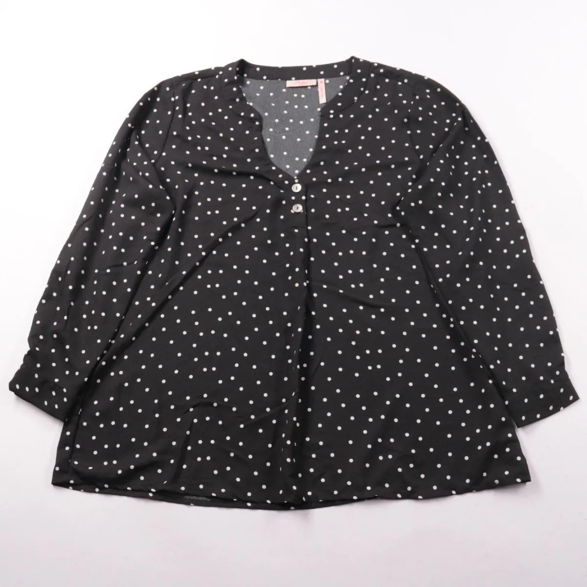 Женская блузка Millers Woman в чёрном цвете с белым принтом в горошек и V-образным вырезом на пуговицах. Подойдёт для офиса и повседневных образов, хорошо смотрится как самостоятельно, так и под жакет. Практичный плюс — лёгкий полиэстер, быстро сохнет и почти не мнётся.
