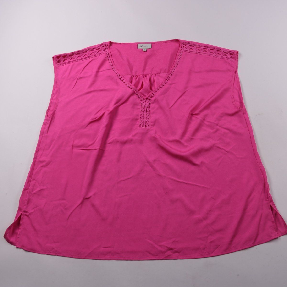 Блузка Autograph без рукавов, ярко-розового цвета, с V-образным вырезом и декоративной вставкой по горловине. Подойдёт для тёплой погоды и для многослойных образов под жакет или кардиган. Лёгкая ткань быстро сохнет и проста в уходе.