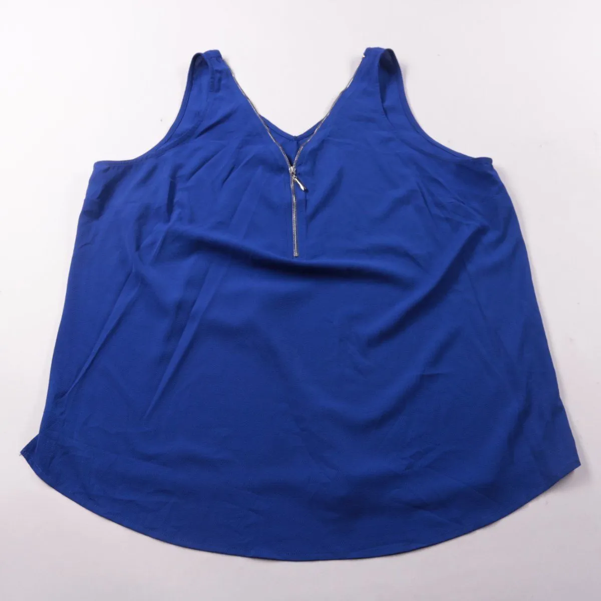 Женская блузка Crossroads насыщенного синего цвета, без рукавов, с V-вырезом и застёжкой-молнией спереди. Подойдёт для тёплой погоды и для офиса с жакетом или кардиганом. Лёгкий полиэстер быстро сохнет и почти не мнётся в носке.