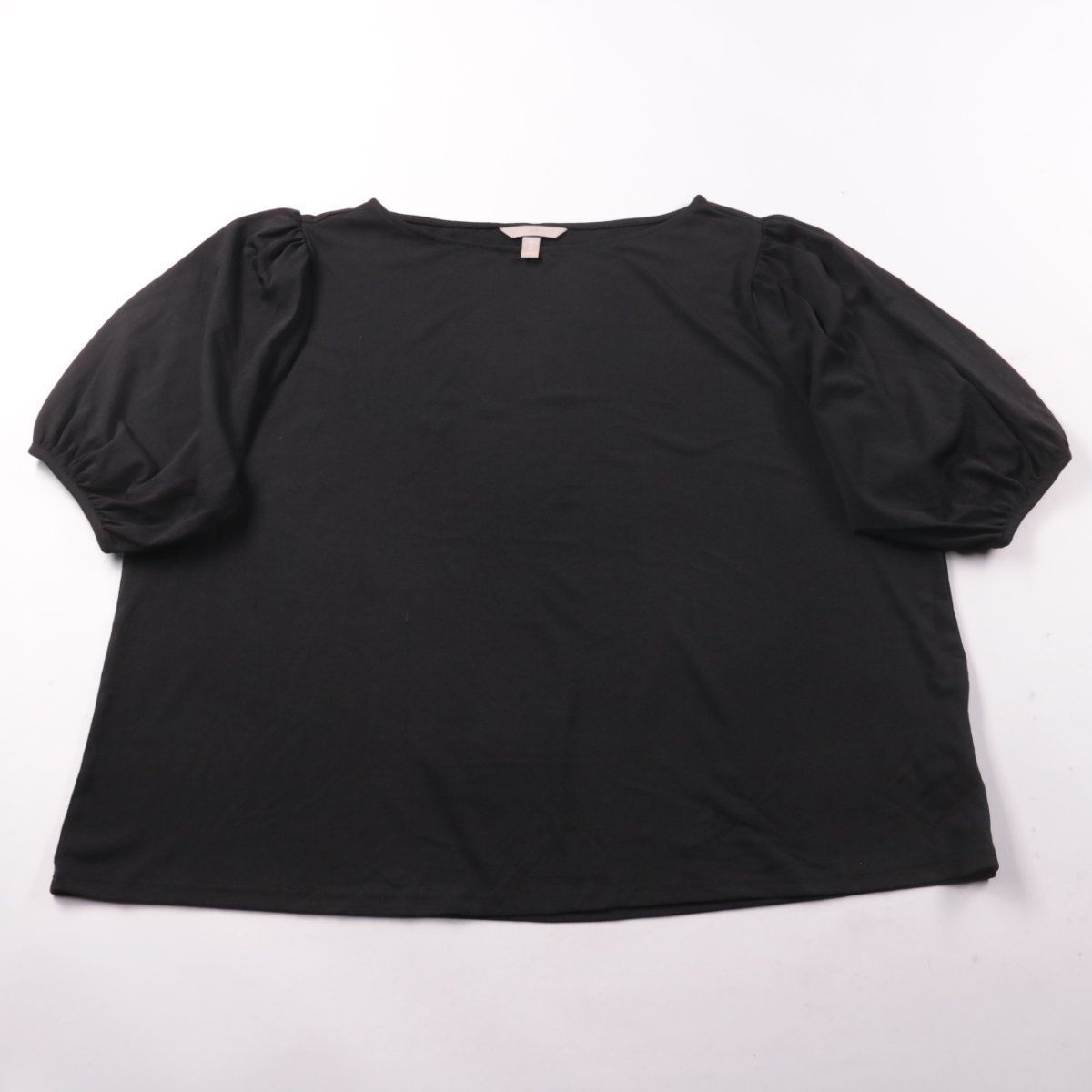 Чёрная женская блузка с рукавами-фонариками и округлым вырезом. Подойдёт для офиса и повседневных образов, хорошо сочетается с юбкой или брюками. Ткань с добавлением эластана слегка тянется и меньше мнётся.