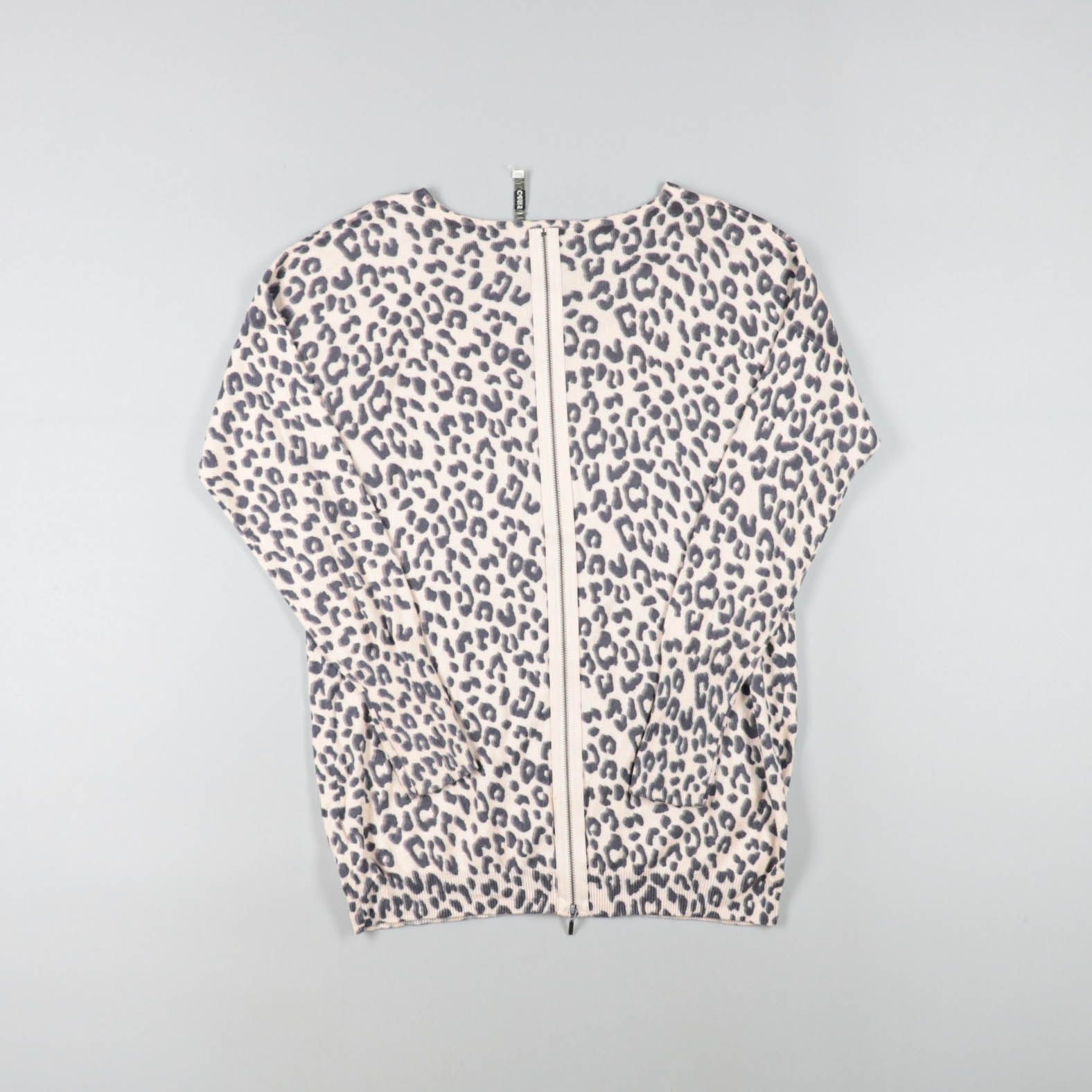 Женская толстовка на молнии с леопардовым принтом, без капюшона. Подойдёт для повседневных образов и как лёгкий верхний слой в прохладную погоду. Молния по всей длине позволяет удобно регулировать посадку и быстро надевать вещь.