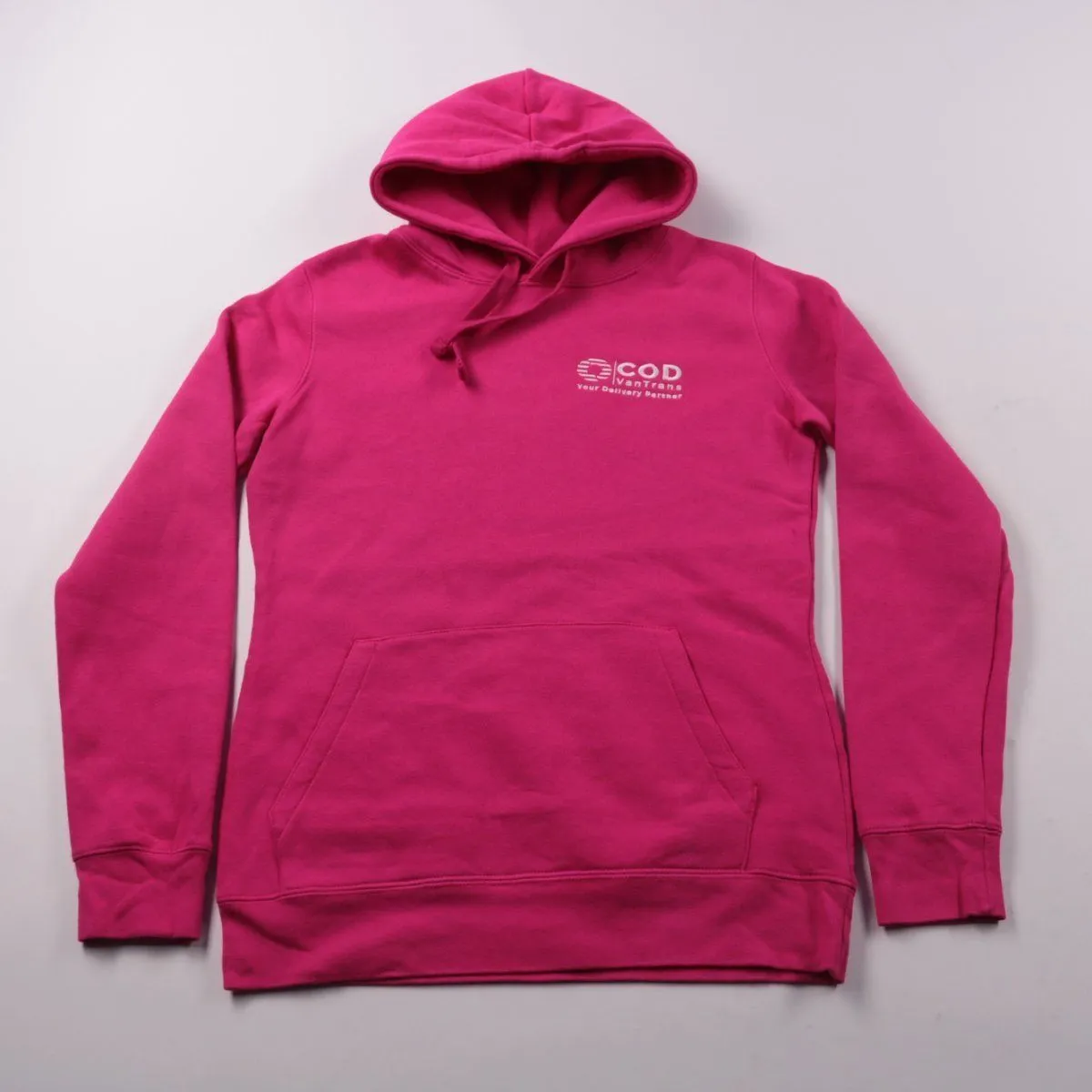 Толстовка-худи розового цвета с капюшоном, шнурком и карманом «кенгуру», с принтом COD VanTrans. Подойдёт для повседневной носки и прогулок в прохладную погоду. Практичное преимущество — смесовый хлопок легче в уходе и меньше мнётся.