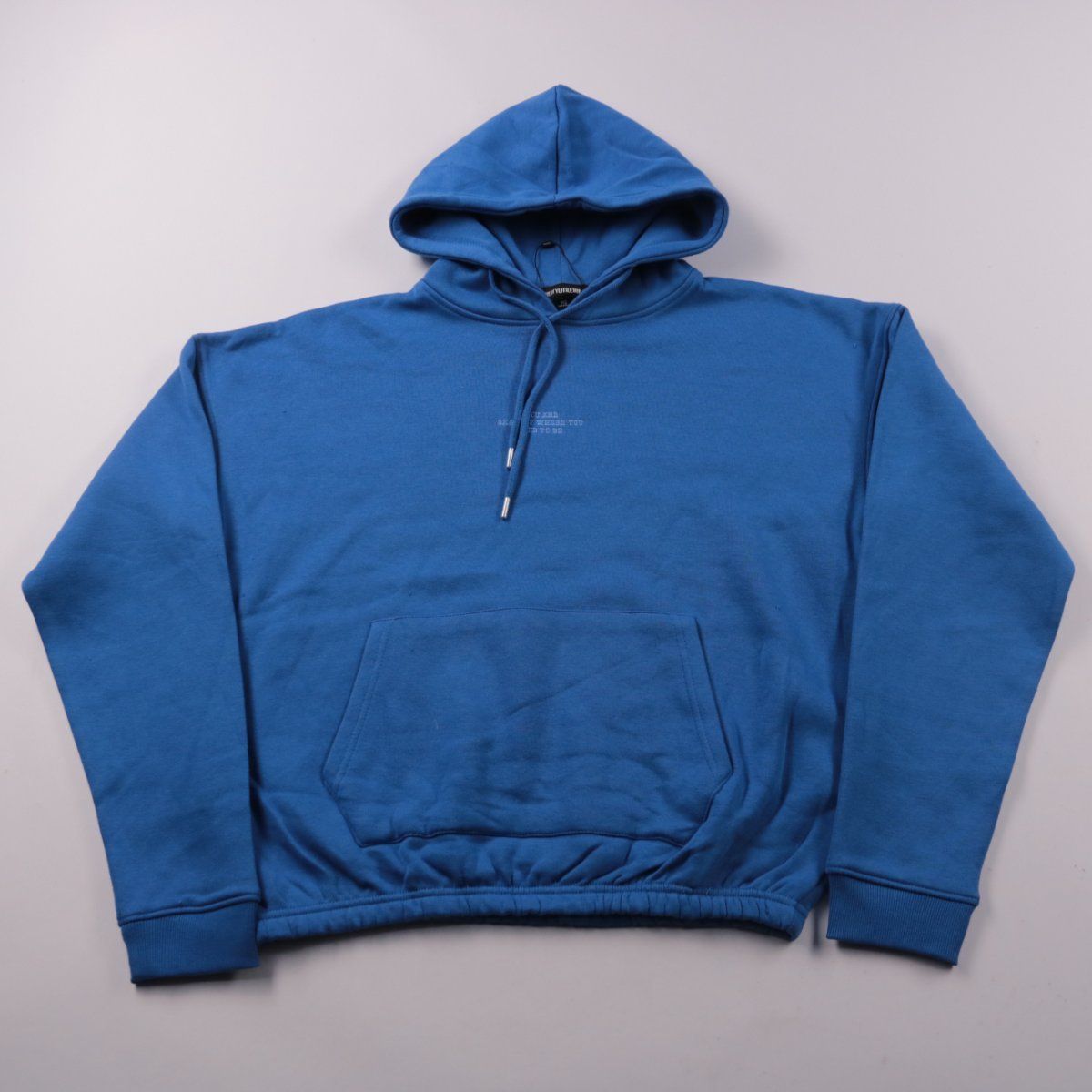 Худи PrettyLittleThing синего цвета с капюшоном на шнурке и карманом-кенгуру. Подойдёт для повседневных образов и прогулок в прохладную погоду. Практичный плюс — мягкий трикотаж и удобный карман для мелочей.