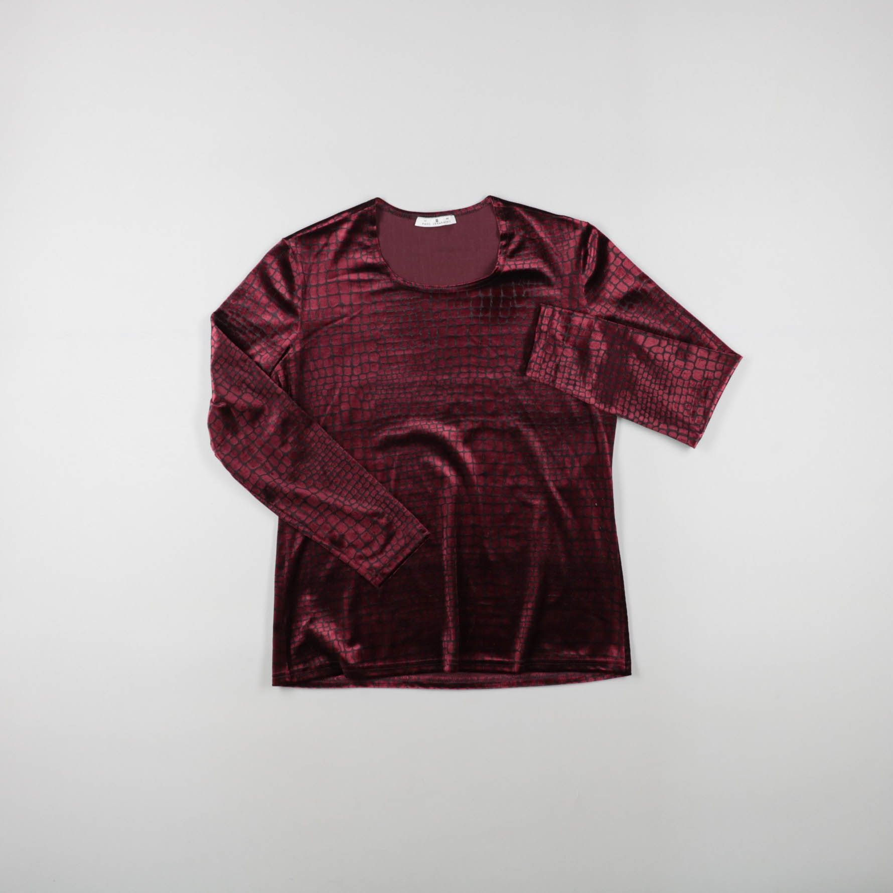 Женский лонгслив с длинным рукавом и округлым вырезом, выполнен из блестящей ткани с фактурным рисунком под рептилию. Подойдёт для вечерних образов и выходов, хорошо сочетается с базовыми брюками или юбкой. Материал почти не мнётся и эффектно смотрится...
