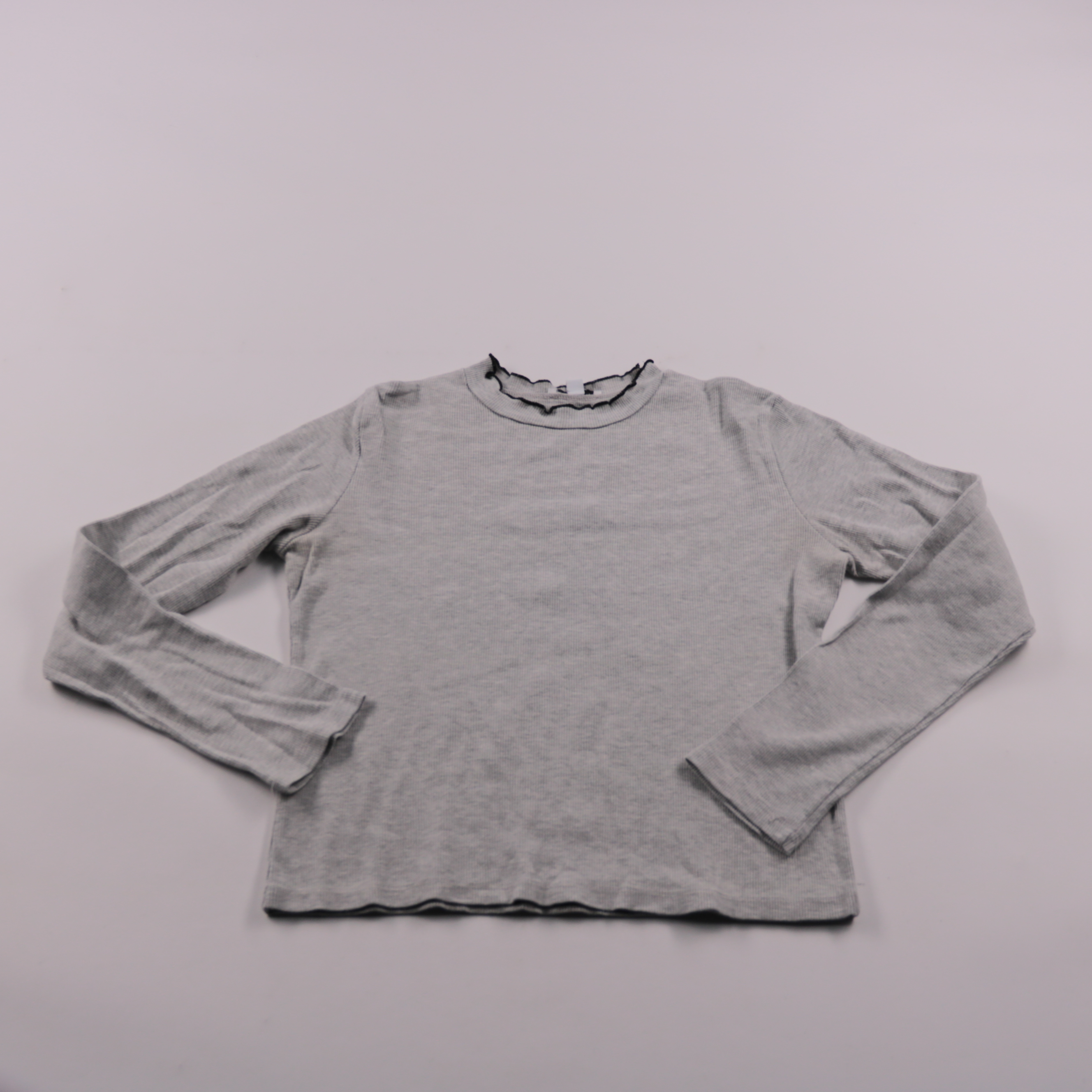 Женский лонгслив Subdued из мягкого трикотажа в сером меланже, с контрастной окантовкой и волнистой отделкой по краям. Подойдёт для повседневных образов и как базовый слой под жакет или куртку. Тонкая ткань удобно тянется и не сковывает движения.