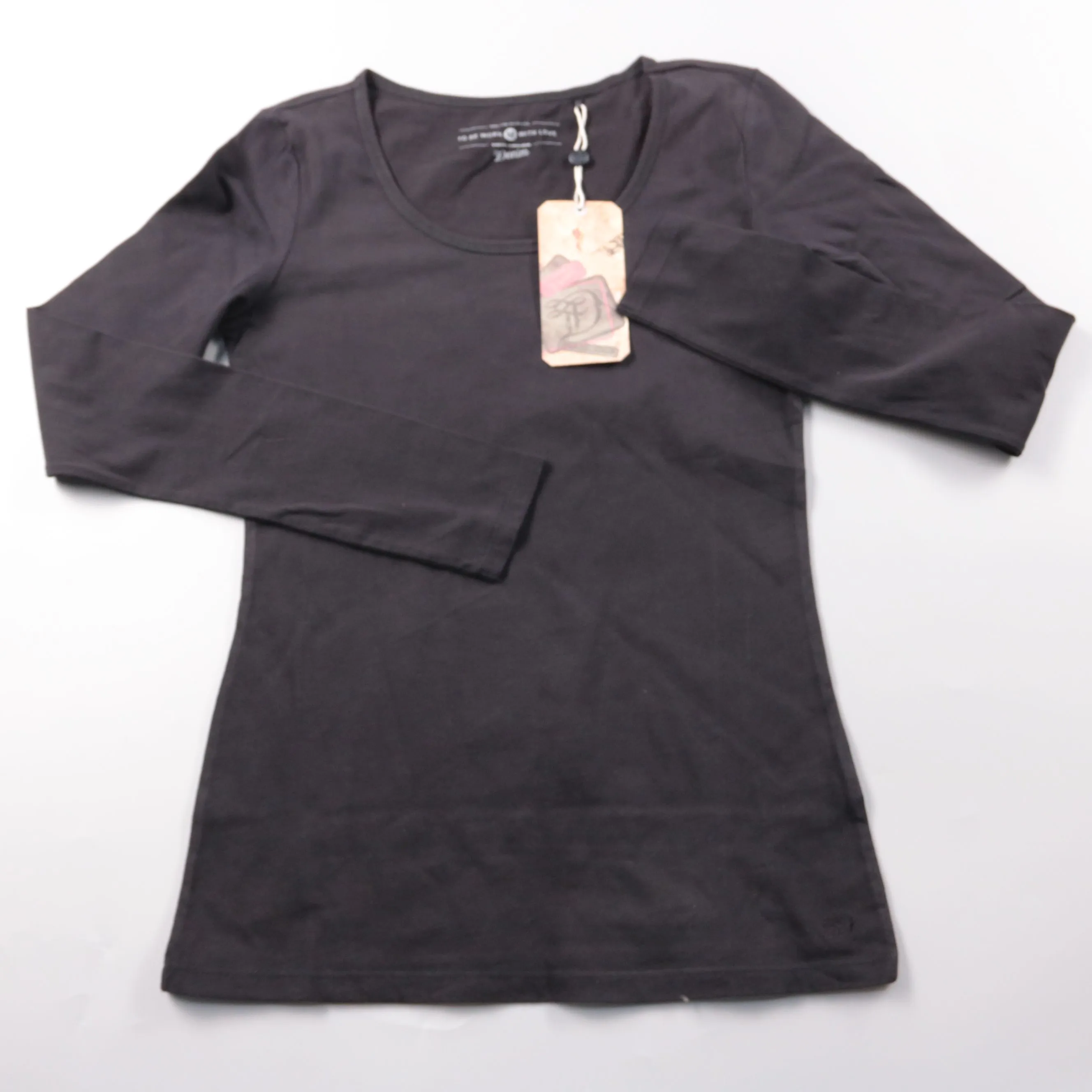 Женский лонгслив Tom Tailor Denim чёрного цвета с круглым вырезом и длинным рукавом. Подойдёт для повседневной носки и как базовый слой под пиджак или кардиган. Натуральный хлопок приятен к телу и хорошо дышит.