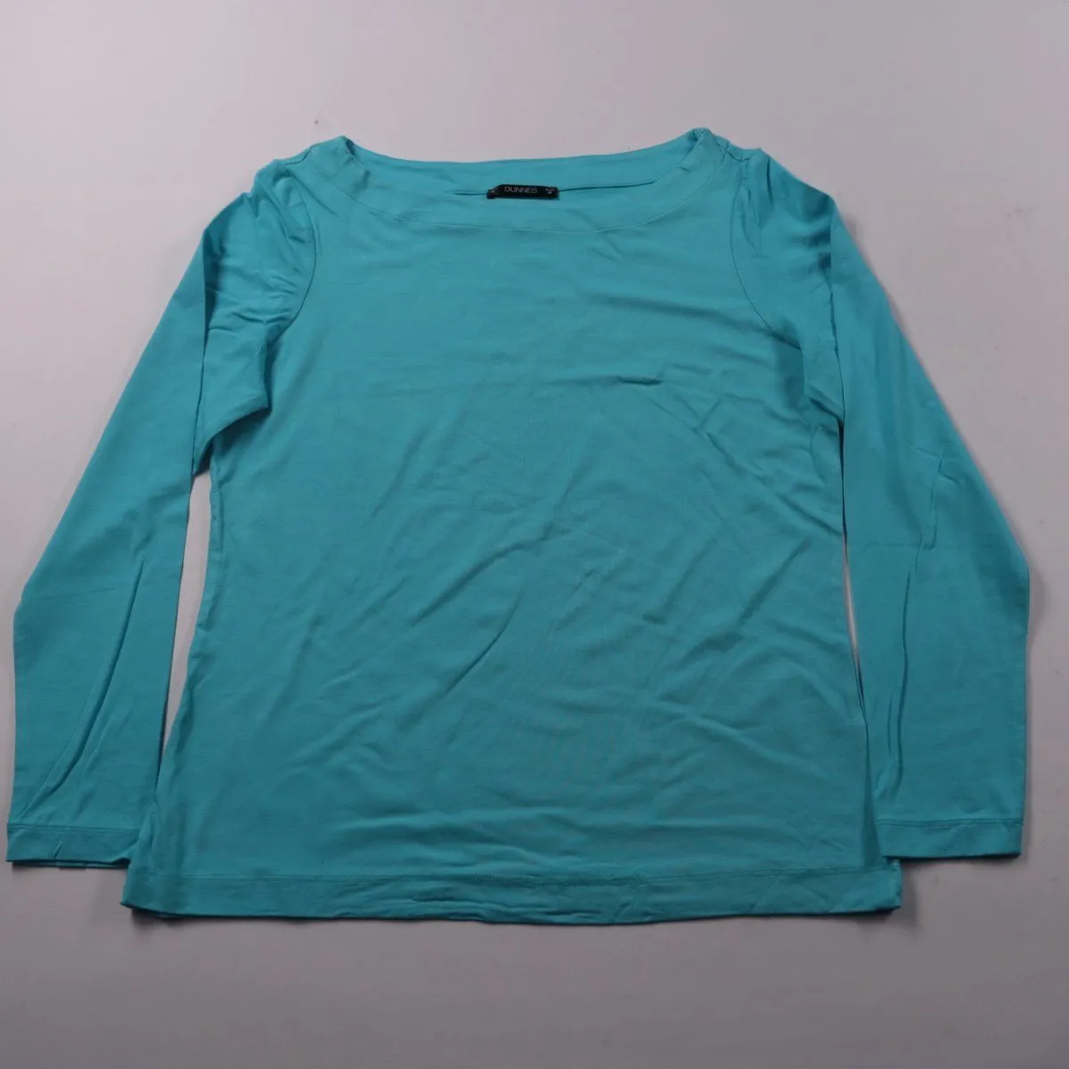 Женский лонгслив Dunnes в цвете aqua, с длинным рукавом и широким вырезом лодочкой. Подойдёт для повседневных образов и офиса под жакет или кардиган. Трикотаж на основе вискозы с эластаном хорошо тянется и удобен в носке.