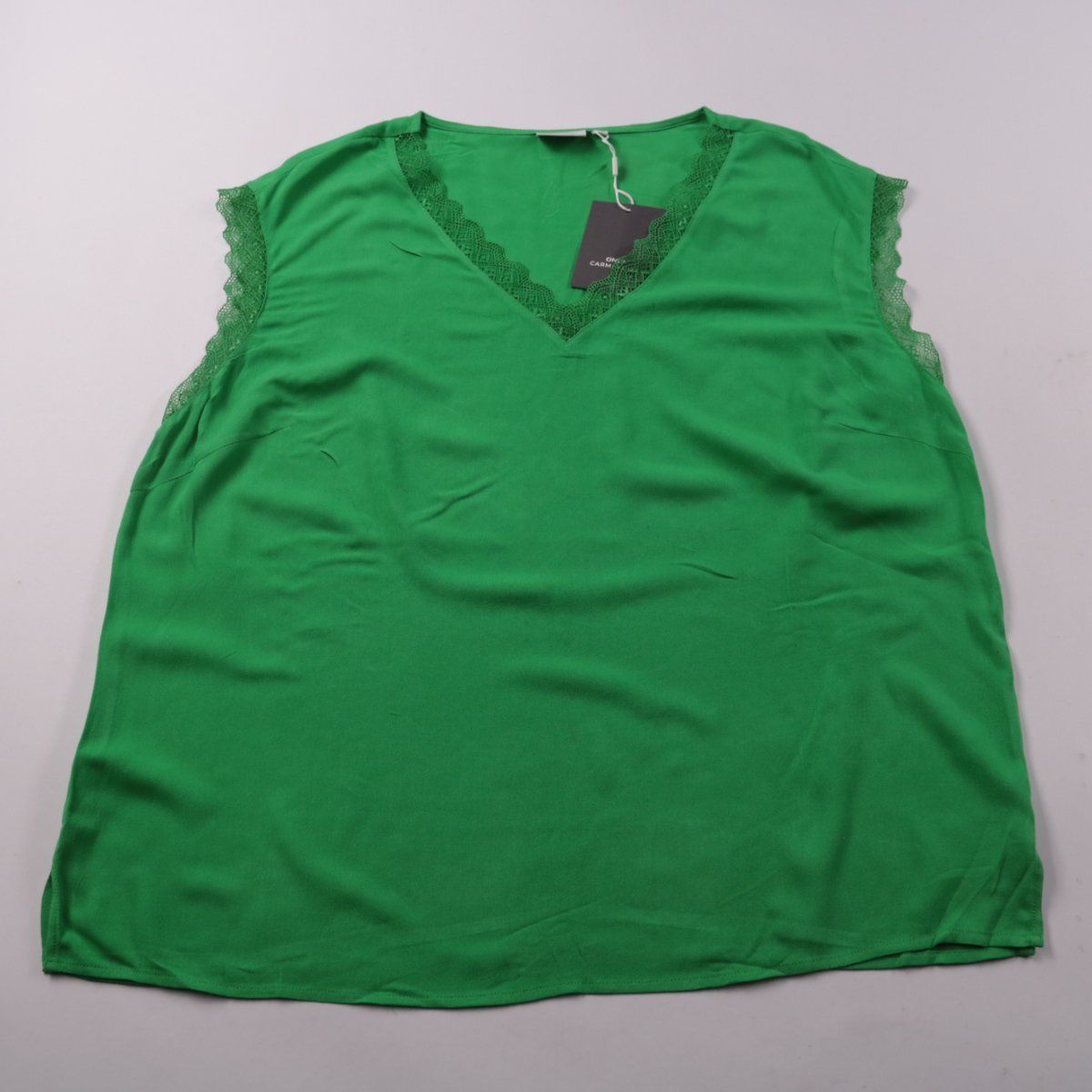 Женский топ ONLY Carmakoma кроя без рукавов с V-образным вырезом и кружевной отделкой по горловине и проймам. Подойдёт для лета и тёплой погоды, можно носить как самостоятельно, так и под жакет/кардиган. Вискоза приятна к телу и хорошо дышит.
