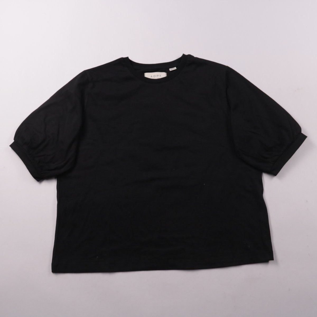 Чёрная хлопковая футболка ADPT с объёмными рукавами-фонариками и круглым вырезом. Подойдёт для повседневных образов с джинсами, юбками и шортами. Натуральный хлопок хорошо дышит и комфортен в носке.
